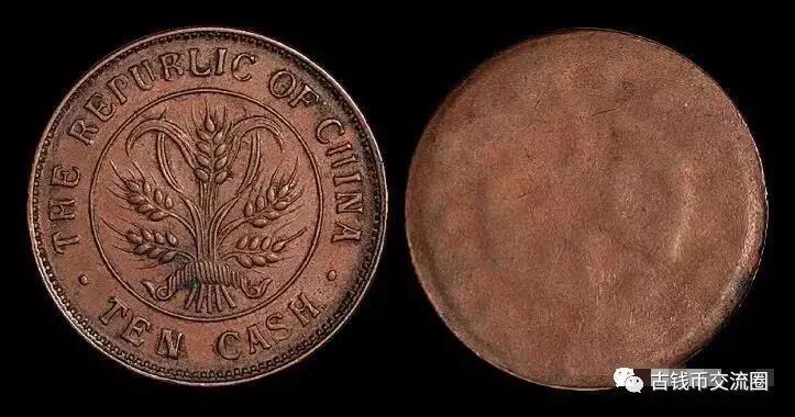⊙简介:1920年湖南省造嘉禾十文单面铜币样币,极美品。