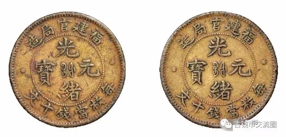 ⊙简介:1902年福建官局造光绪元宝当十文黄铜样币,合背试打,马定祥旧藏,极为罕见。