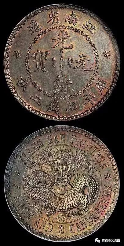 光绪年间并不存在江南省,实际上是为了与其他江苏省铸铜元有所区别而采用江南省造,全部银币皆由南京造币厂所铸。光绪二十三年(1897年),南京造币厂委托英国喜敦造币厂雕刻一套大小共五种面值的银币,模具雕刻完成之后喜敦造币厂铸有少量镜面(PROOF)状态的银质样币与七钱二分铜质样币,铸造极为精美。后江南省造全套币模运回中国,南京造币厂大量铸造流通于市,喜敦原厂所铸镜面版样币则成为了机制币收藏的顶级珍品。