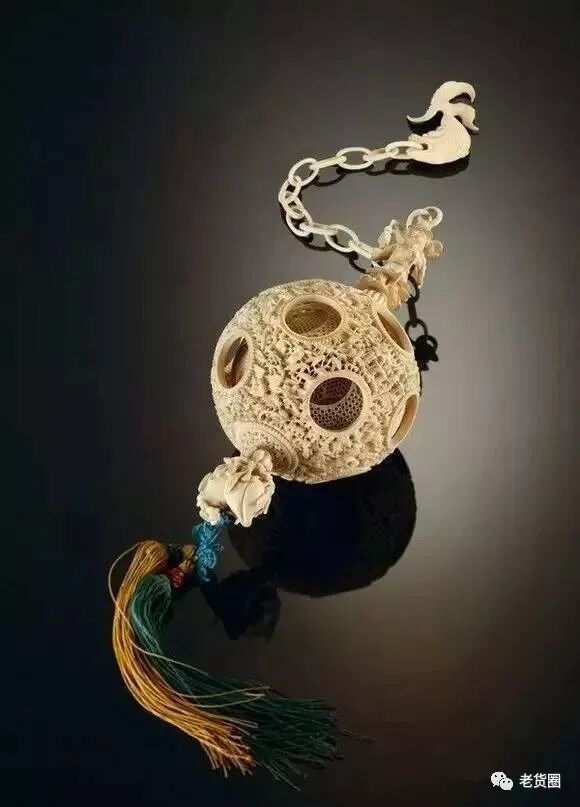 象牙套球是中国古代的一种工艺品,它交错重叠,玲珑精致,表面刻镂着各式浮雕花纹。球体从外到里,由大小数层空心球连续套成,外观看来只是一个球体,但层层叠叠套连相含。其中的每个球均能自由转动,且具同一圆心。