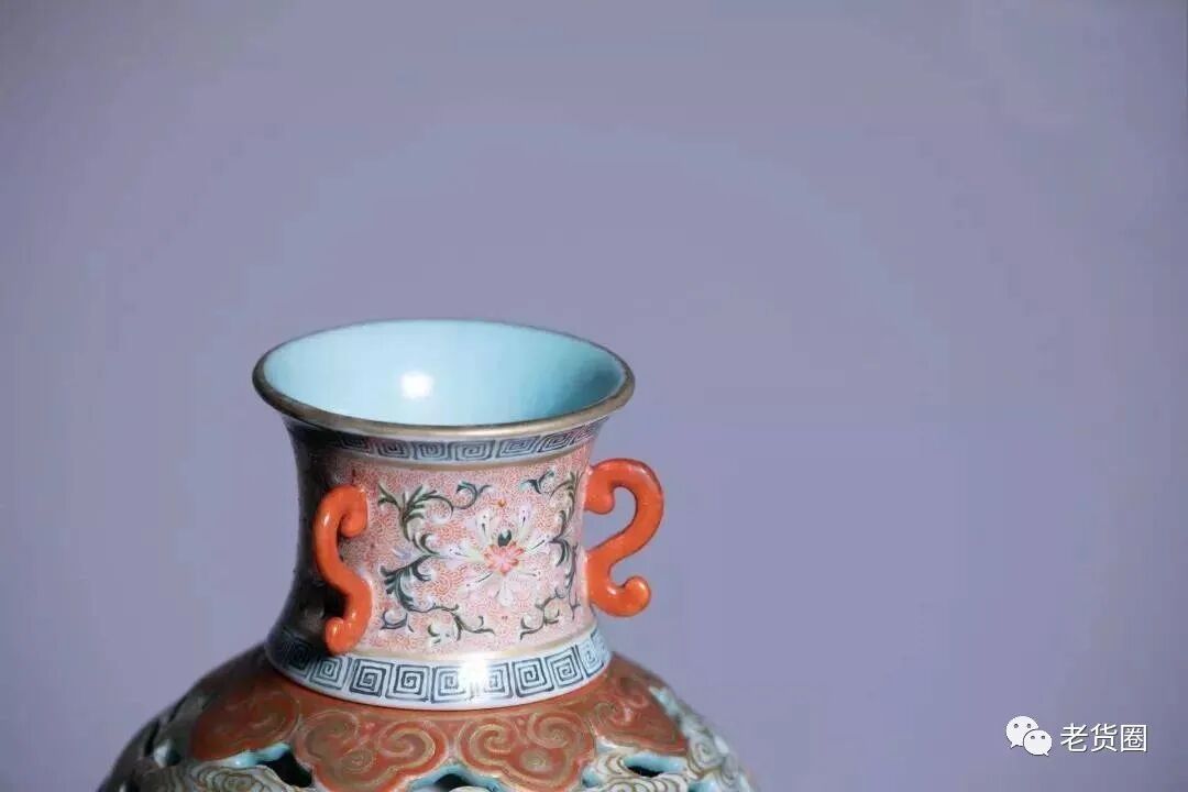 清乾隆 洋彩透云蝠内八仙贺寿玲珑转心瓶