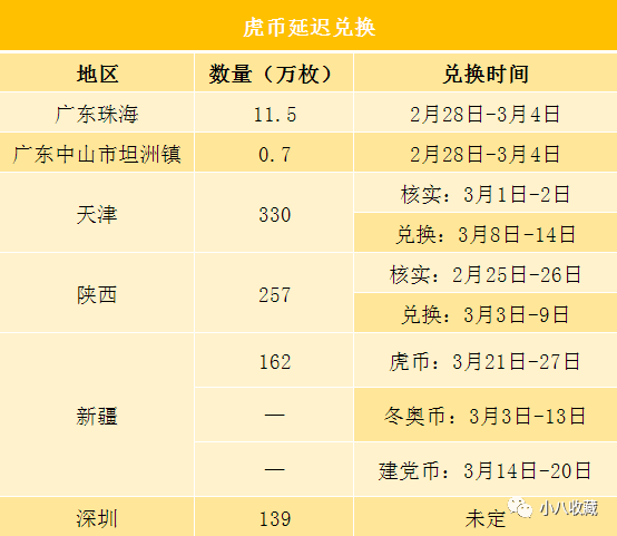 目前,除了深圳外,虎年纪念币延期兑换地区都已公布了最新的兑换时间!