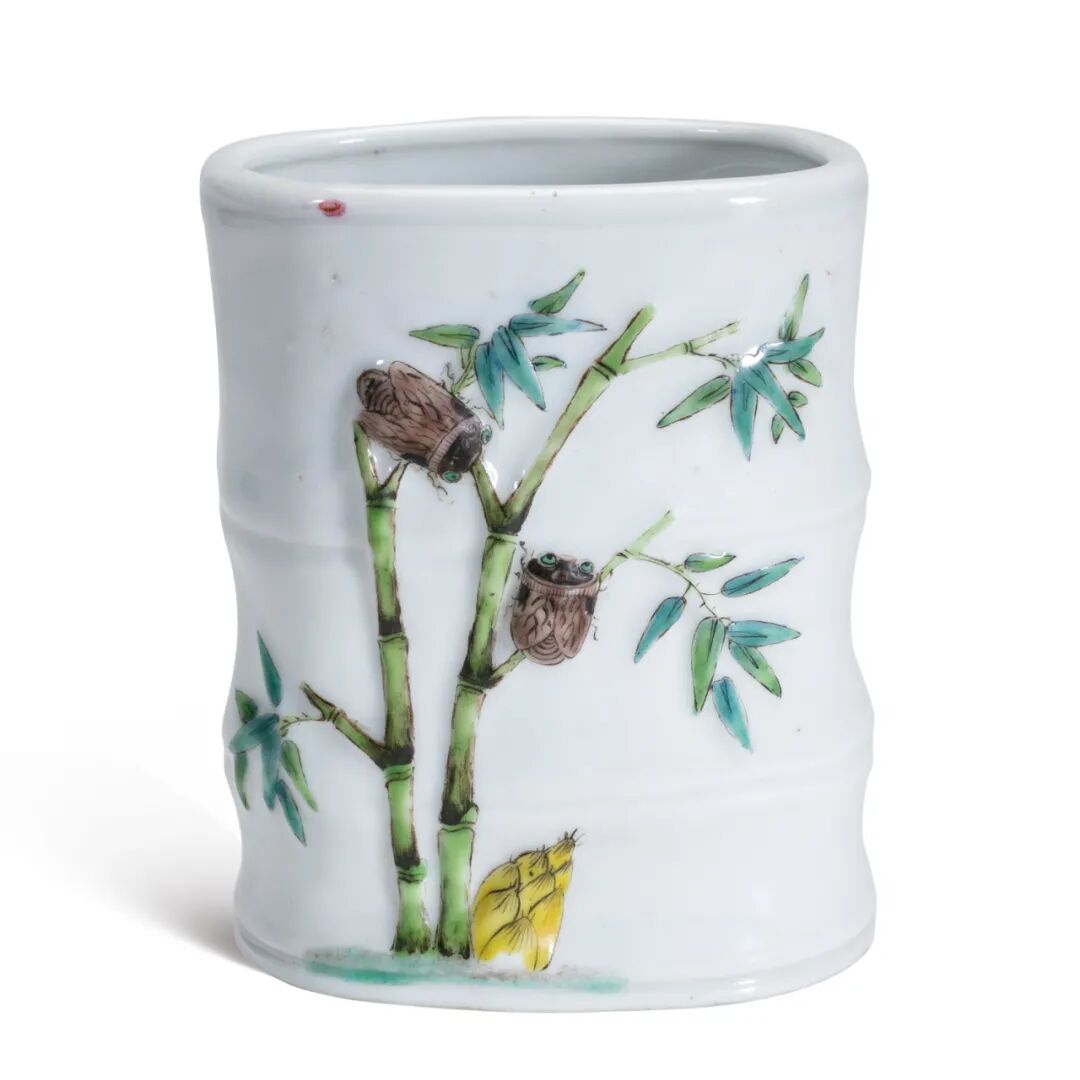湖南大麓珍宝古玩城得名于岳麓书院楹联“纳于大麓,藏之名山”,位于湖南省文化高地——韭菜园古玩文化街28号,是省内目前唯一一家具有文物经营资质的民营古玩市场。为丰富古玩城业态,活跃文物集散地气氛,增加购买趣味性,有效地为商家引流,湖南大麓珍宝古玩城近年开始举行常态化的艺术品拍卖活动,湖南大麓拍卖应运而生。湘会春天里,湖南大麓『2022春季文物艺术品拍卖会』将于3月5日在大麓珍宝古玩城四楼拉开帷幕,联拍在线将全程直播,并提供实时同步竞拍技术和服务支持。本次拍卖分为玉器、瓷器两大专场,共计带来400余件精品。其中玉器专场所有拍品均进入中国收藏家协会民间文物艺术品(玉器)备案系统,瓷器专场则汇集清代民国的青花、五彩、粉彩、单色釉、墨彩、斗彩、浅绛彩等各类佳器,题材丰富。来源:荘贵仑旧藏,该组出自苏富比。荘贵仑先生是敏求精舍第一批元老,敏求精舍是成立于1960年的收藏家团体,其成员是一群醉心于中国文物艺术品收藏的香港藏家,在收藏界有较高的知名度。来源:出自香港苏富比2019年5月拍卖会,中国艺术品专场。来源:出自香港匡时 2017 年秋季拍卖会,玉之美专场梅瓶造型秀巧,周身采用通景式构图绘群仙贺寿故事图。整体画片近大远小层次分明,吸纳西方绘画的特点,设色鲜明丰富,有乾隆粉彩的风格,绘工细腻精湛,乃民国时期粉彩佳作。底心书写“大清乾隆年制”六字三行篆书款。拍品直口,直腹,呈筒状。造型俊秀,线条流畅。筒身以粉彩绘桃花仕女图,娇花盛开,灵石奇特,仕女发髻高束,手提红鲤,神情娴静,仪态优雅,衣褶飘逸。整器工艺精湛,设色清雅,绘画精细,笔触细腻,布局舒朗,华丽夺目,为一件优雅的书房陈设佳器。笔筒作竹节状,筒身一侧浮雕翠竹一株,旁生一笋,另一侧装饰一只飞舞鸣蝉。整个作品工艺复杂,先于胎体之上贴塑雕刻笋竹,另一侧暗刻鸣蝉,完成后于蝉身及竹笋局部施黑褐色彩料,本品的纹饰内容相对于后世作品略显简洁,工艺却颇为复杂,或为一件雕瓷工艺初创时的作品,具有极高的研究价值和收藏价值。此一品种为清代官窑传统式样,直口深壁、下腹丰满、圈足平齐、器壁敦厚、重心偏下,因体呈墩式,故得名。本碗造型稳重大方,胎体轻重适度,器里外施白釉,釉质莹洁如雪,外壁以矾红彩绘制蝙蝠寿桃纹,寓意福寿绵长。参阅:《故宫博物院藏慎德堂款瓷器》,故宫出版社,2014年,页142、143,图34此一品种为清代官窑传统式样,外壁绘青花缠枝牡丹纹,茎蔓纤细,花叶舒展,其间均匀地分布四组绽放和含苞的牡丹,釉面洁净滋润,青花色泽亮丽,纹饰构图繁密。梅兰竹菊是明清官窑的传统纹饰,以其清高淡雅的特性,比兴君子坚贞之德,而受到历代帝王的喜爱。此对碗造型端庄,胎体细腻,施釉莹润。外壁通景绘梅兰竹菊四君子图,画意清高,布局饱满,笔触精道。青花发色浓淡相宜,极为惹喜,成对保存,极为难得。参阅:《中国清代官窑瓷器》,上海文化出版社,2003年,页365矾红地留白技法始创于雍正时期,其制作先在白釉上以矾红彩勾绘纹饰轮廓,在轮廓外满填红彩,形成红白相应的色彩构图,是清代独特的瓷艺品种,亦称“盖雪红”。清末陈浏在其所著《陶雅》中曾解释道:“涂以抹红之釉而需其中若为空白者,又似乎阴文之花纹,谓之盖雪。” 拍品胎质细腻,白釉温润。碗外壁以矾红地留白技法描绘雪竹挺立,竹叶舒展,布局错落有致,色彩艳丽,白釉纯净,具有强烈的艺术感染力。1.《明瓷名品图录—洪武窑、永乐窑、宣德窑》,台北故宫博物院,1977年,图652.《徐氏艺术馆 陶瓷Ⅳ 清代》,(香港)徐氏艺术馆,1995年,图68、77拍品器形、纹饰源于宣德青花葵口斗笠碗而加以创新,清代官窑中,此品种见有雍乾两朝制器,多为廿六厘米左右之大碗,似拍品缩小尺寸者极为少见。斗笠碗型,折沿,器形规整,内外满绘青花纹饰,盘心为一朵正面的折枝花卉,内外壁绘折枝四季花卉纹,圈足饰卷草纹。纹饰布局饱满,青花局部重笔点染,刻意追仿永宣时期特征。Lot 321 清光绪 官窑粉彩云龙纹象耳玉壶春瓶玉壶春瓶流行于金元时期,源自“玉壶先春”而得名,一直延续至明清时期,撇口,细颈,鼓腹,造型优美典雅。此对粉彩龙纹玉壶春瓶为光绪朝官窑作品,底书“大清光绪年制”青花楷书款,笔法严谨,挺拔有力。瓶身矾红彩绘云龙纹,龙纹描画精细,呼之欲出。整件作品纹饰赋彩丰富,粉料厚实,极具立体感。具有很高的收藏价值。参阅:《官样御瓷:故宫博物院藏清代制瓷官样与御窑瓷器》,紫禁城出版社,2007年,页196、197拍品与北京故宫博物院藏品品种相同,为光绪时期宫廷专用瓷器,极富时代特色。撇口,腹部圆鼓,圈足外撇。胎体厚重,肩部两侧象耳生动逼真。釉色清丽怡人,周身以洋彩绘饰,颈绘黄地宝相花,肩部绘锦地梅花纹,主题绘通景牡丹芦雁图,施彩瑰丽明艳,纹饰细腻华美。是为一件清代光绪时期的精美佳器。此一品种为清代官窑传统式样,本品撇口束颈,圆腹下垂,圈足微外撇,造形丰腴优雅。瓶胎质坚细,釉质滋润,青花发色艳丽。瓶腹主体通景绘制竹石芭蕉图,画面以翠竹、洞石、芭蕉为主体,三者相互搭配,层次分明,错落有致,背景点缀花草、栏杆。整个画面构图疏密得当,笔意娴熟,意境清雅。瓶颈部、肩部及足墙分别以蕉叶纹、忍冬纹、如意云头纹、莲瓣纹和朵花纹等图案作为辅助纹样。瓶底心青花书“大清光绪年制”