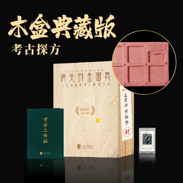 木盒典藏版以考古中的一种重要的文物处理方法“套箱提取”为设计灵感。作为本轮三星堆考古大发现的限定纪念版,还原“考古提取箱”木盒外表上的封条,将原本的粗木条优化为手感细腻的大块木板,并且细致打磨边、角,让木盒颇具品质感,在完成解谜游戏后,将道具收纳其中,盒上雕刻独一无二的专属编号,用作陈设与收藏,都十分合适。