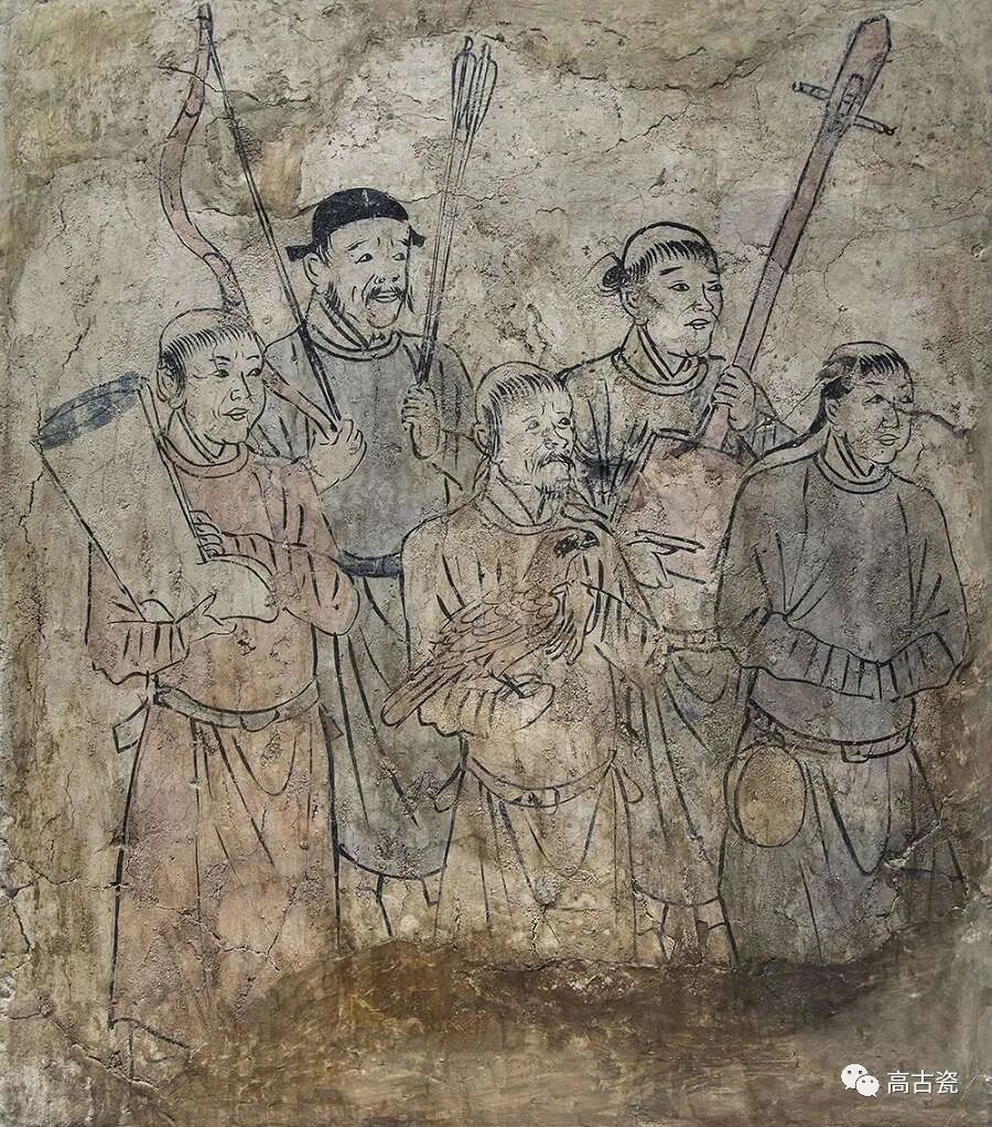 出土时分别置于木制小帐门(象征墓主人居所的殓葬用具)的两侧,均以矿物质颜料绘制而成,色彩艳丽,比例适中,笔触自然流畅。男执酒壶,女捧茶盏,神态恭敬,作侍奉主人宴饮状态。辽代国家重典以酒成礼,生活百事以酒行事,饮酒之风非常盛兴。辽地虽不产茶,但通过贸易、礼赠或贡纳而获得,受唐代饮茶的影响,饮茶渐成契丹社会的风俗。契丹人好饮且善饮,平时“相率携尊驰马戏饮”,宴客时“饮酒品茶欢歌热舞”。备酒送茶图表现了契丹贵族的奢华生活和游牧民族独特的善饮风习。