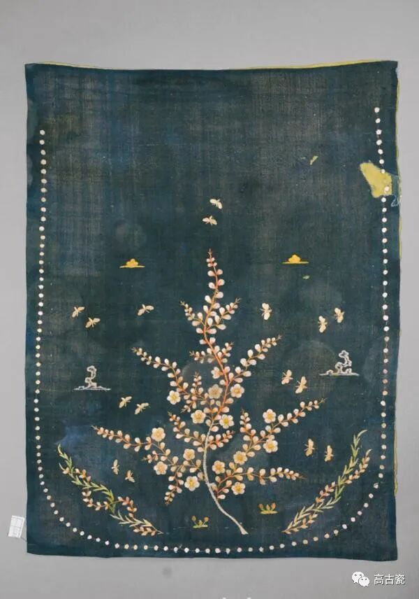 蓝罗绣梅花蜂蝶卷草纹巾 辽庆州释迦佛舍利塔出土 巴林右旗博物馆藏