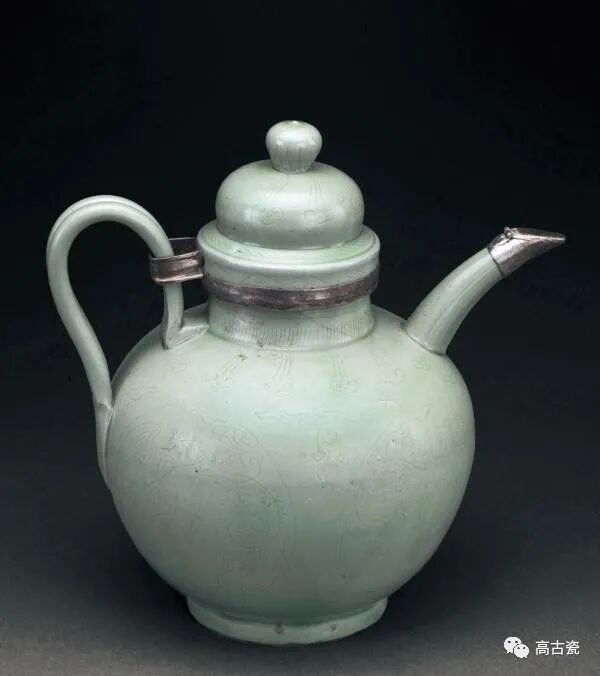 越窑鹦鹉纹银扣青瓷执壶 内蒙古多伦县小王力沟辽代墓出土 内蒙古文物考古研究所藏