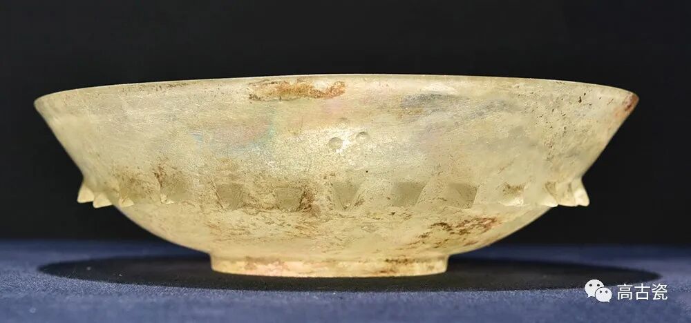 乳钉纹玻璃盘,通辽市奈曼旗青龙山辽陈国公主墓出土,内蒙古文物考古研究所藏