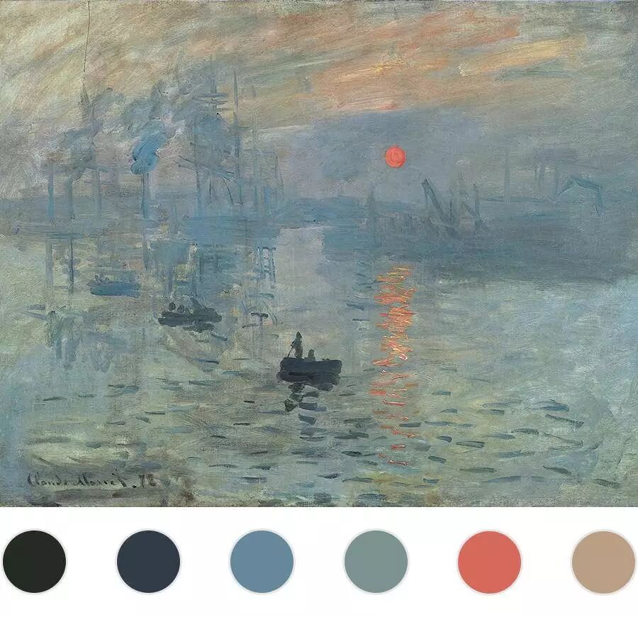 可能你不同意我所说的,觉得《日出·印象》非常恬静不具备任何力量,那我们可以试着改变一下《日出·印象》的颜色,而恰巧这“日出红”在其中,还有一个很奇妙的视觉效果。
