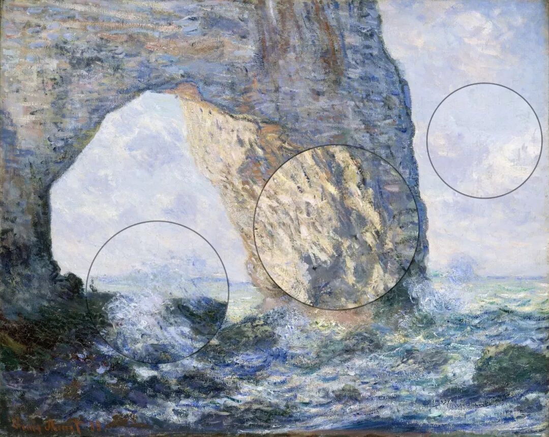 也许光是文字,很难让人感同身受,那我们把这天空换成上面那幅莫奈的《埃特尔塔的悬崖》的天空看一下。