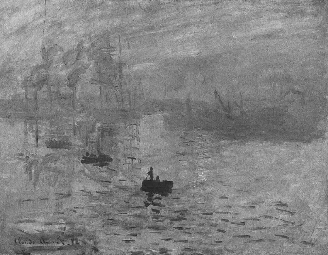 当你尝试不断在这幅画的黑白与彩色之间切换,我相信你一定能够感受到那股红色如这幅画的名字一样具有的力量,留下深刻的“印象”。