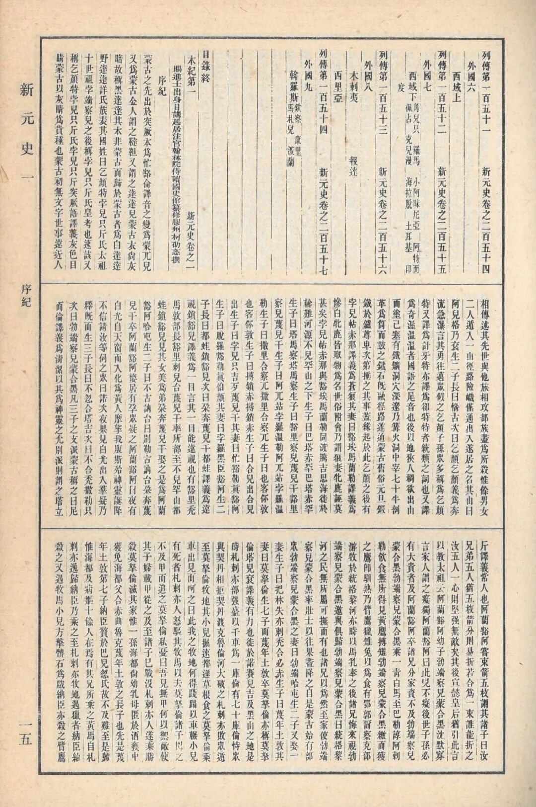 点校本《新元史》,包括《新元史》二百五十七卷,并附《新元史考证》五十八卷。作者柯劭忞(1848—1933),在小学、经学、史学、词章上具有造诣。《新元史》为纪传体史书,全书结构与《元史》基本相同,也分为纪、表、志、传四部分,但对《元史》有不少增补订正,对了解元代军事、政治、经济、文化、人物、制度等有广泛的参考价值。《考证》记录了作者在写作《新元史》过程中所作的考证及引据出处。民国期间,政府仿照《唐书》《五代史》新旧并存的先例,下令将《新元史》列为正史。柯氏为撰写此书,曾翻检过多达八千卷的《永乐大典》,并广泛参考西方史料和清代钱大昕以来各家研究《元史》的成果。总体而言,《新元史》体例较为严谨,采择文献丰富,无愧为正史之一。