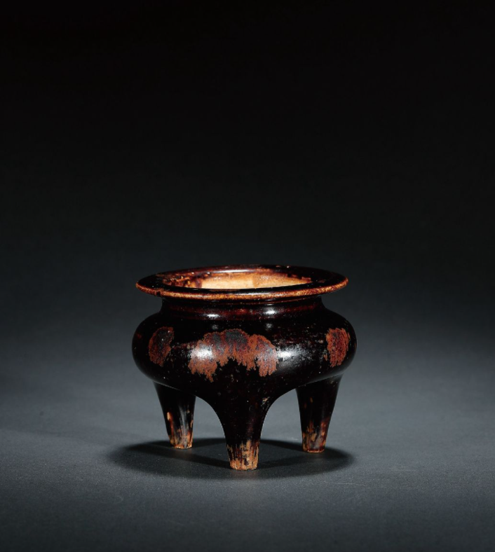 吉州窑黑釉铁锈花鬲式炉