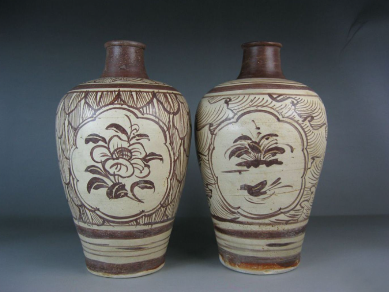 吉州窑彩绘梅瓶一对