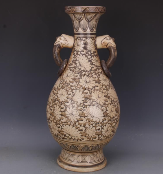 吉州窑荷花纹象耳瓶
