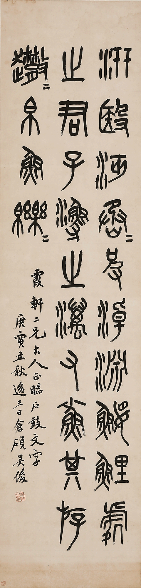 说明:高野侯上款。高野侯(1878~1952),名时显,字欣木,号野侯,浙江杭州人。时丰弟,清末举人。官至内阁中书,为中华书局创办人之一,任常务董事,美术部主任,又为西泠印社早期社员。因收藏王冕《梅花图卷》,自号梅王阁主。所藏古今名人画梅极丰,称“五百本画梅精舍”。以书隶、画梅、治印著名。精鉴定,富收藏,尤工画梅。与其兄高时丰、时敷并称“高氏三杰”。