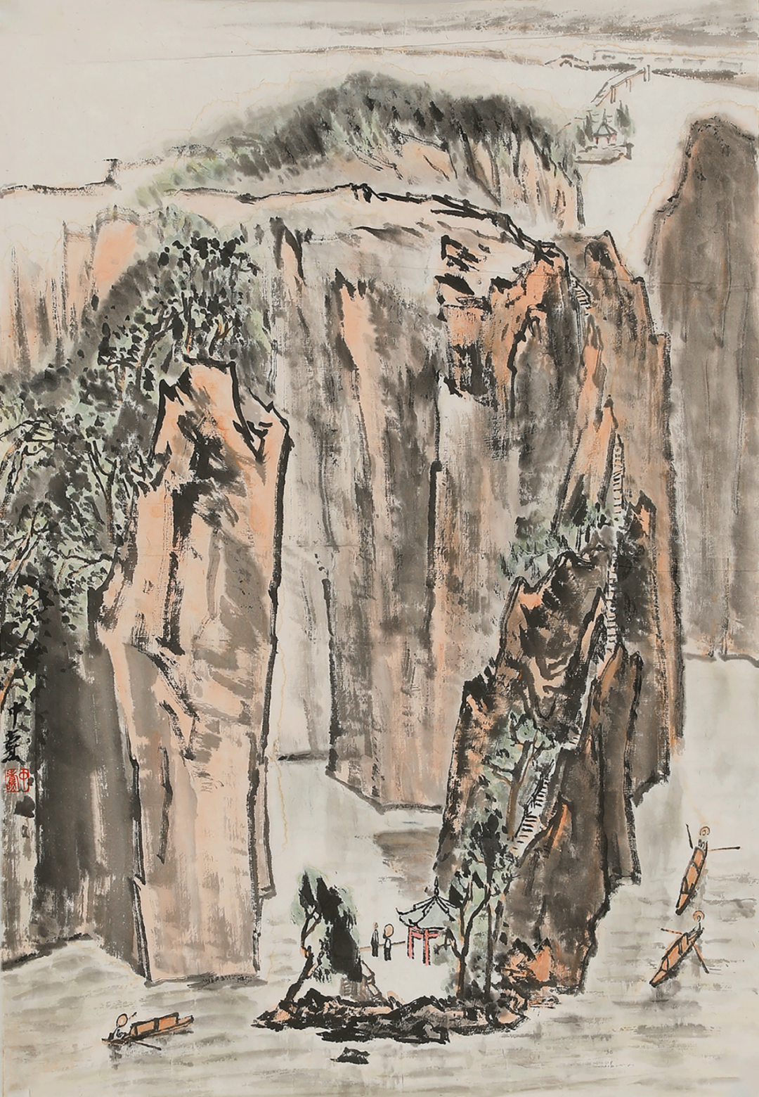 童中焘(1939~ )崇山行舟图(庄松龄旧藏)