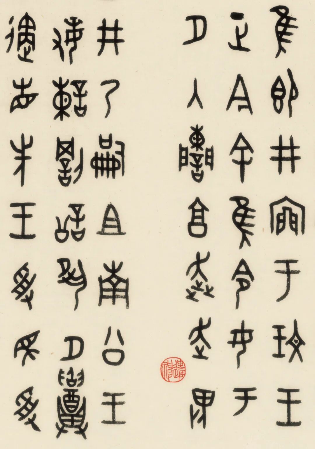 先秦时期,铜被称为“金”,因此铸刻在铜器上的文字被称为“金文”,现在已发现的最早的金文可追溯到商代晚期。西周金文书法承袭商代而来,却走出一条与商人颇不相同的发展道路,其中最重要的是完成了对象形文字符号体系的图案化改造,完成了中国历史上第一种正体——大篆字形结构和书体样式的演进,第一次为文字与书法确立典范和法度秩序。