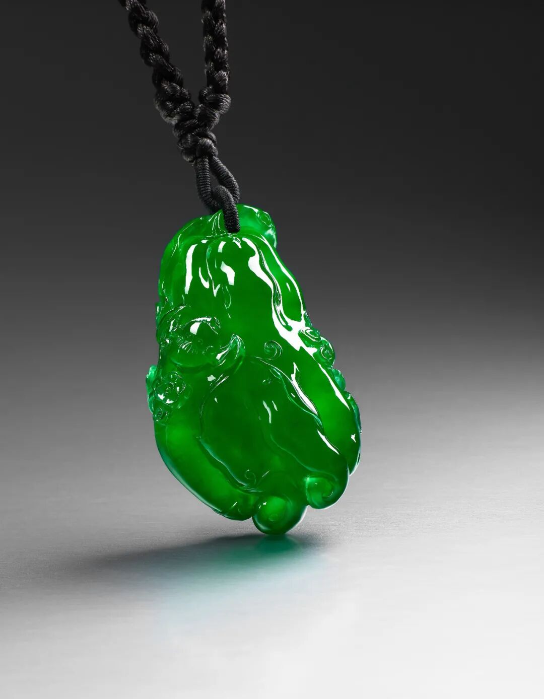 「翠玉福寿双全佩」缅甸天然「帝王绿」色翡翠「佛手」挂坠