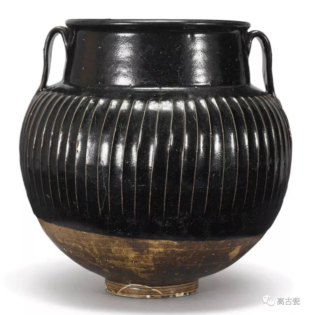 黑釉线条罐上的棱线凸起,使深色的釉自然流下,形成了棱线淡,棱线边沿釉堆积,釉色深,两线平坦之处釉色浅的视觉效果,恰似绘画中的黑白灰布局,充满了画面的分割感。而这种棱线的制作方法其实属于一种特殊的“沥粉工艺”。