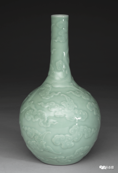清 豆青釉堆塑云龙纹天球瓶(图1) 台北故宫博物院馆藏
