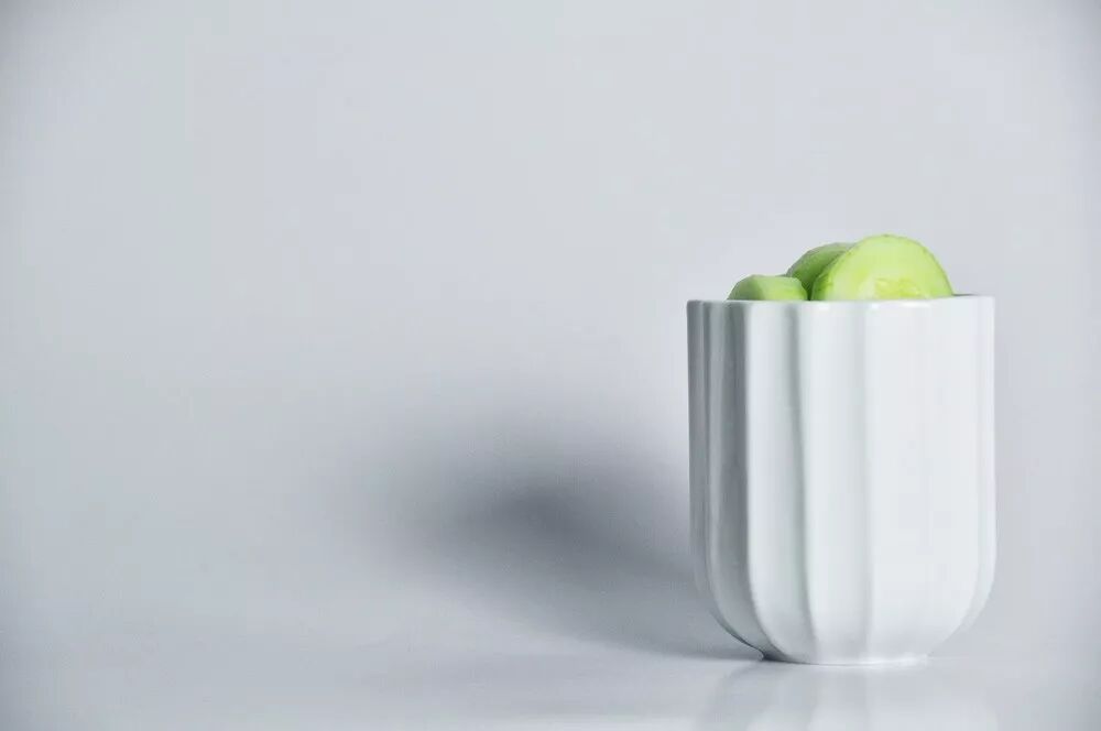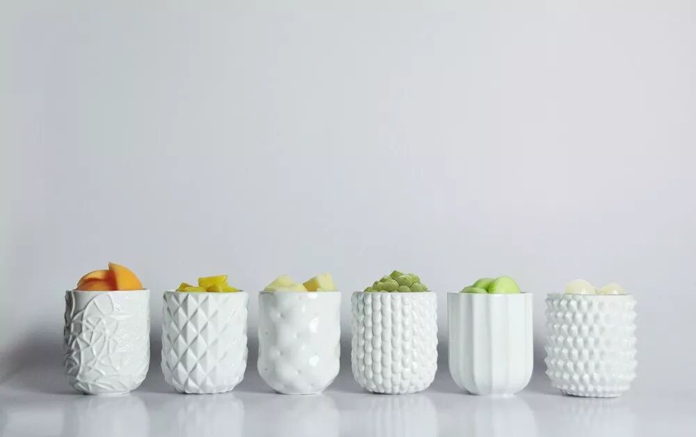 ViiCHENDESIGN出品的陶瓷水果和蔬菜皮杯子,可以促进食物与外表面的更深层次的联系,反映各种水果和蔬菜皮的形状和质地。