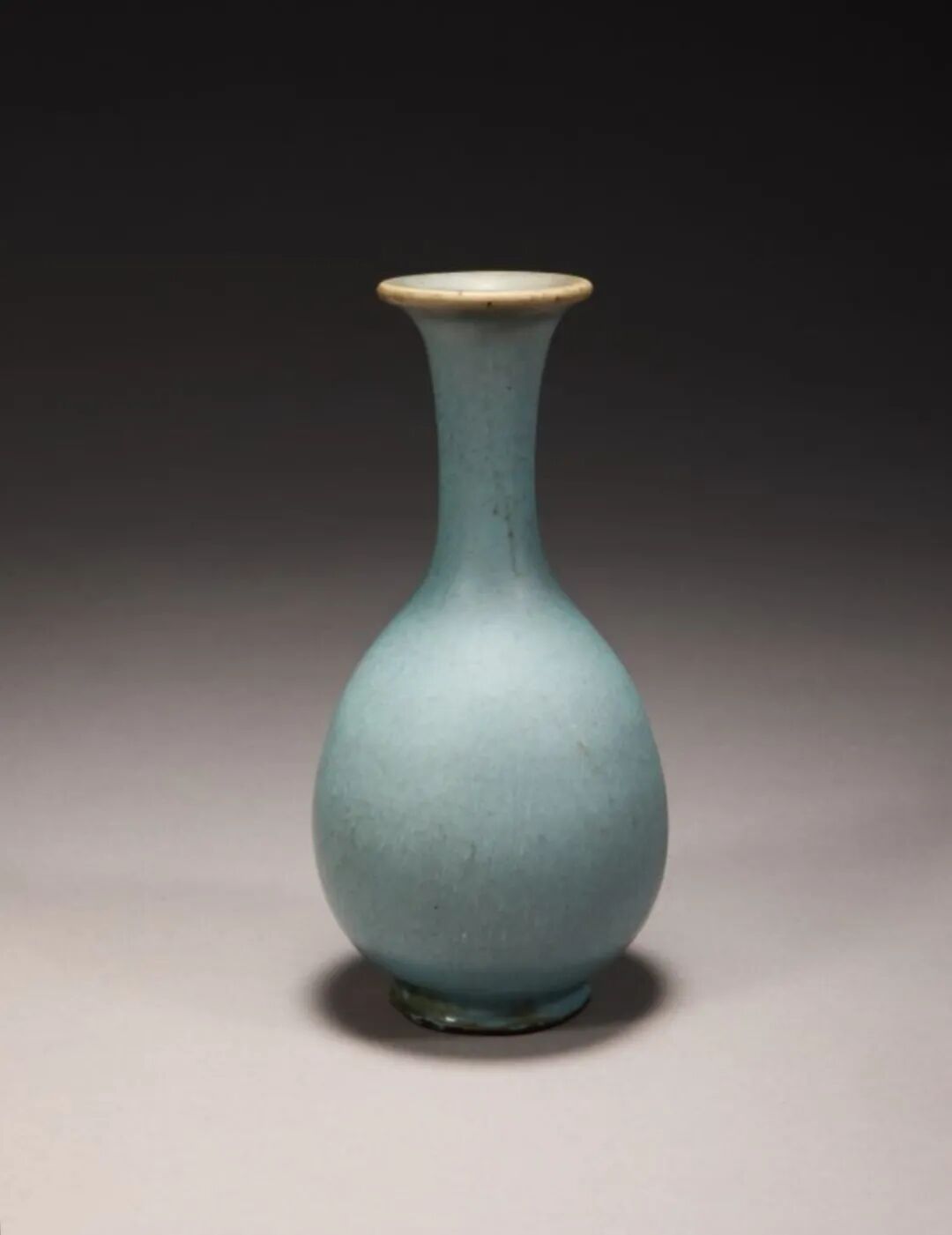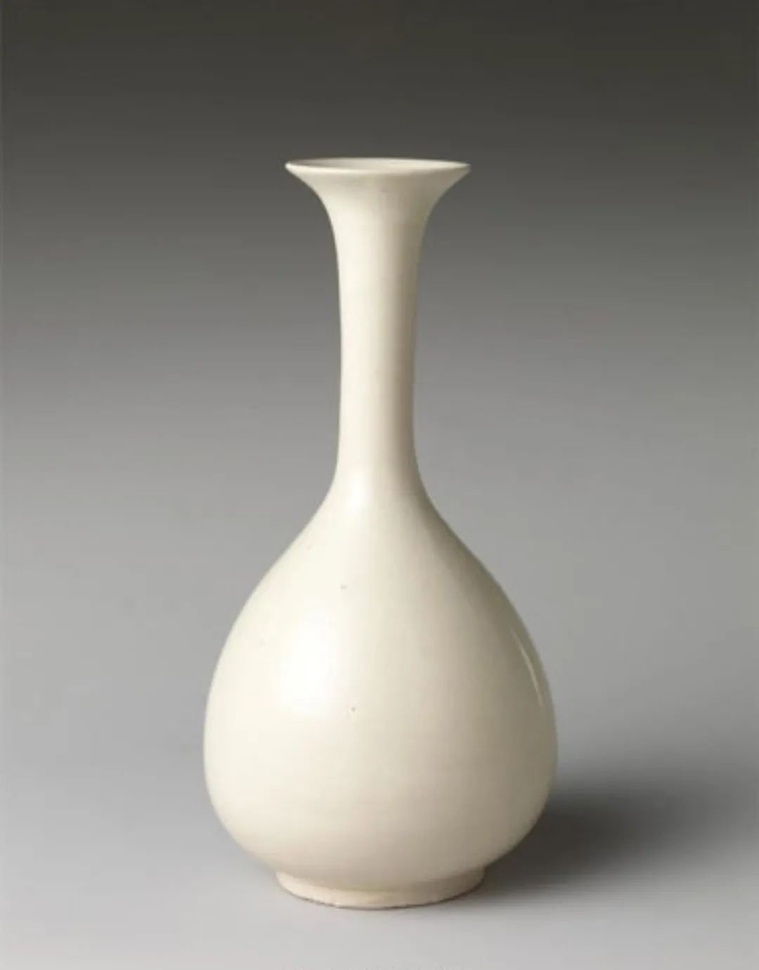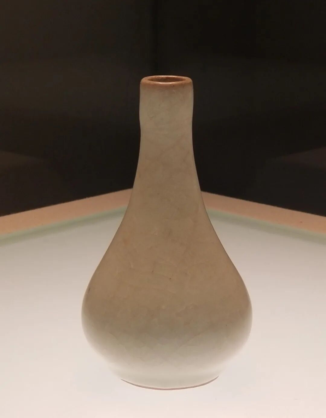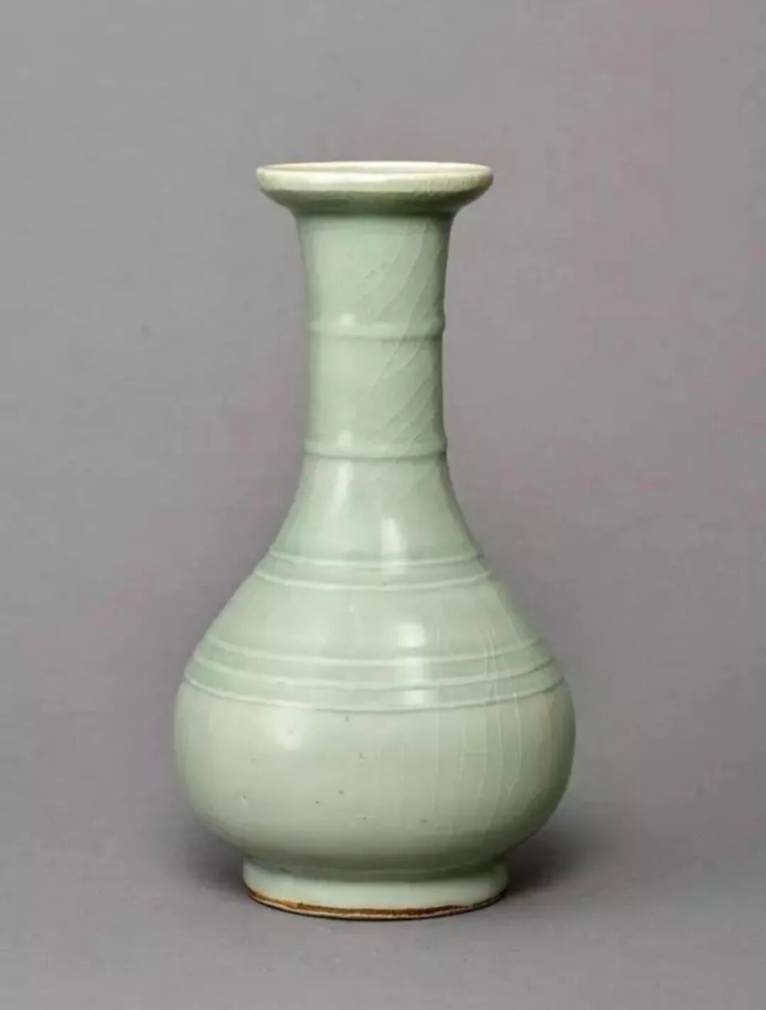 玉壶春瓶,是典型的宋瓷器型。它的造型也是由唐代寺院里的净水瓶演变而来。基本形制为撇口、细颈、垂腹、圈足。(实物)它的弧线变化比较柔和,造型上比较独特之处是:颈较细,颈部中央微微收束,颈部向下逐渐加宽,过渡成为为杏圆状下垂腹。
