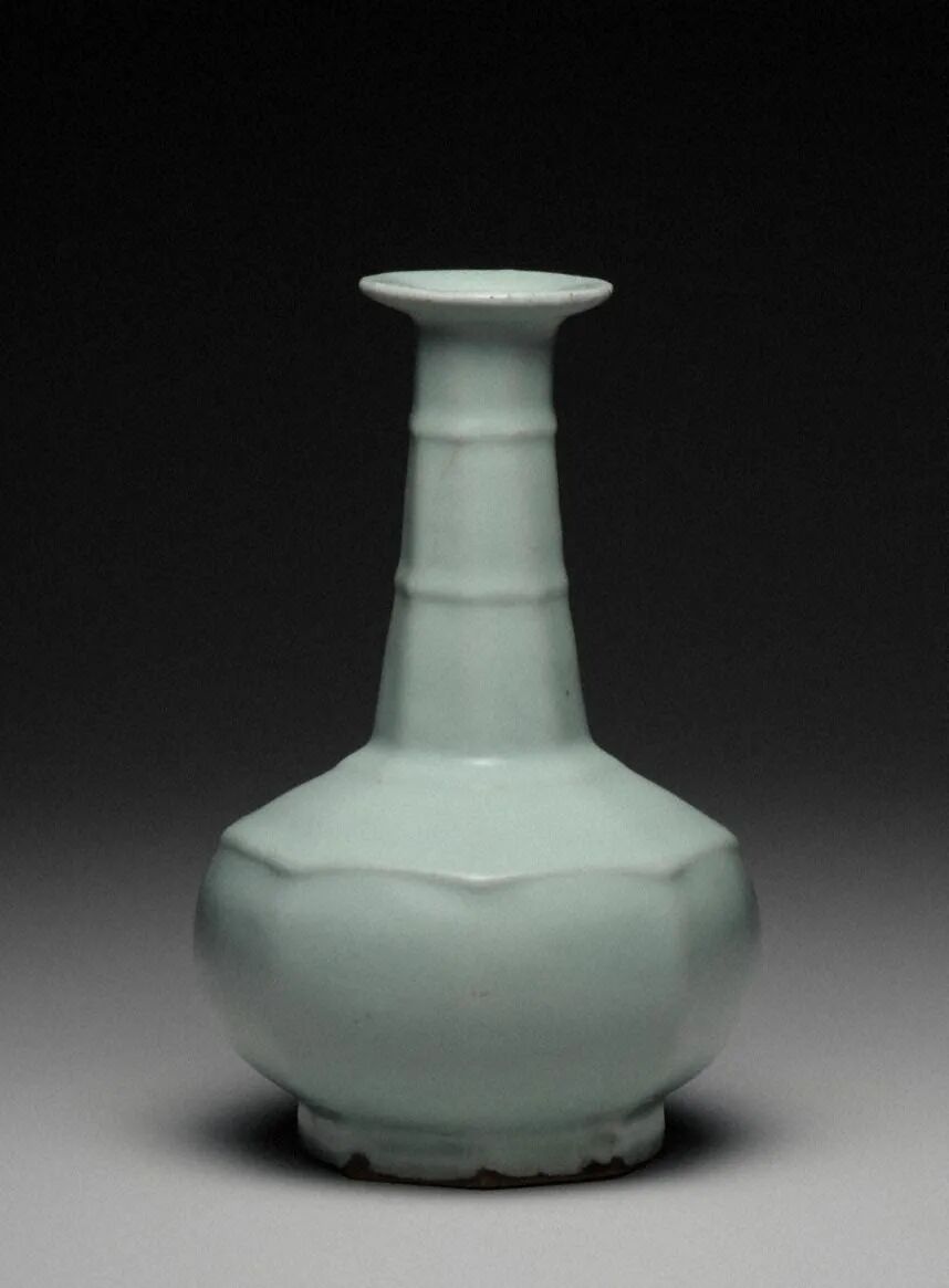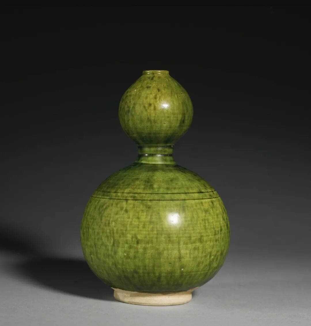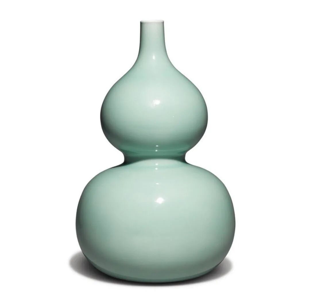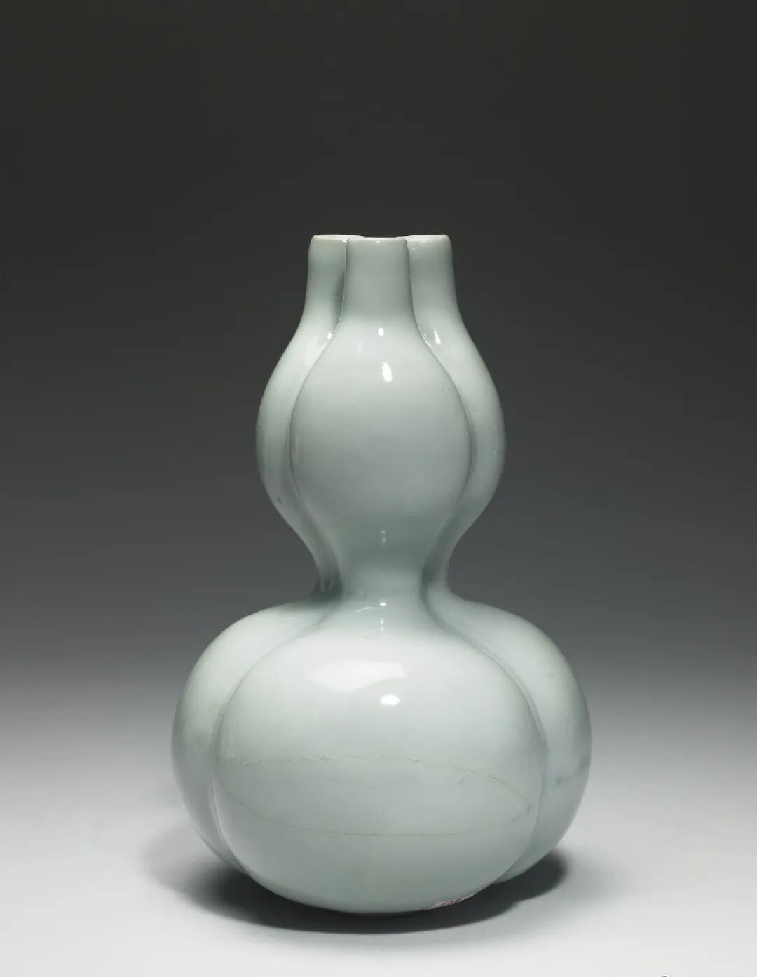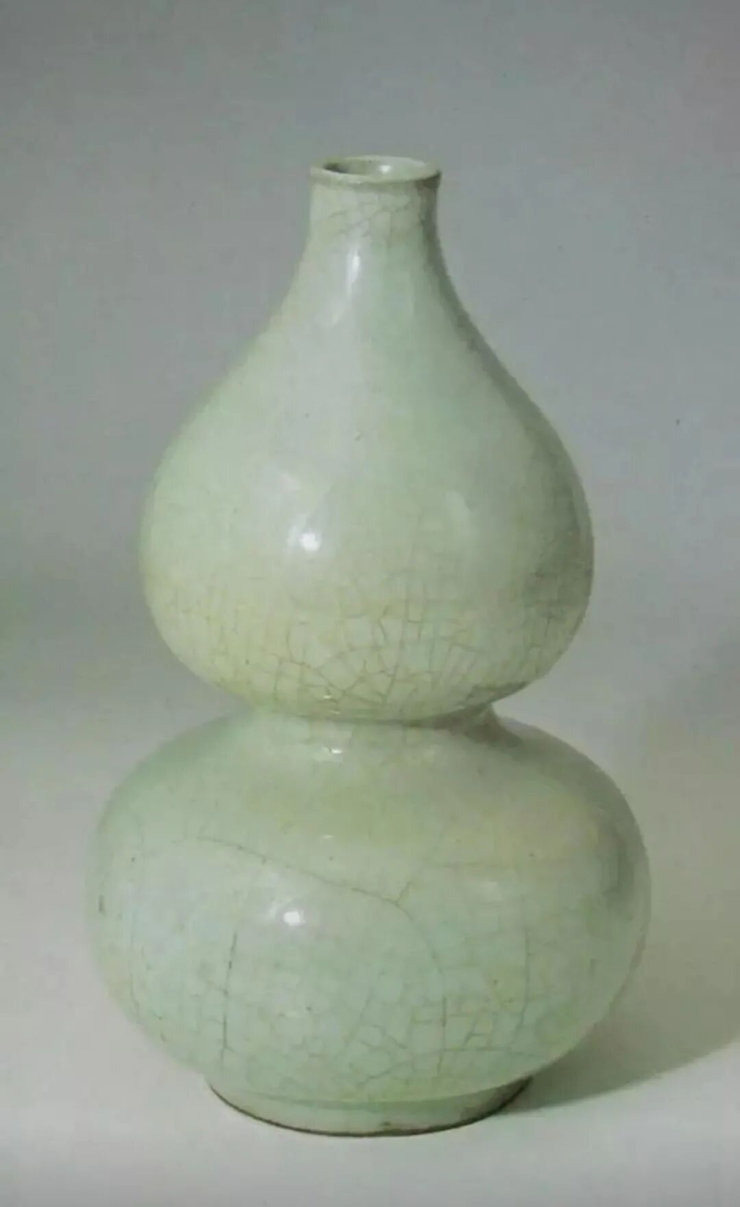 葫芦瓶是南宋后期龙泉窑创制的瓶式,因为瓶体像葫芦而得名。小口,短颈,瓶体由两截粘合而成。葫芦,与“福禄”谐音,器形像“吉”字,所以又被称为“大吉瓶”,寓意大吉大利。宋元时期,龙泉窑、景德镇窑都有生产。从元代起出现了八方葫芦瓶,上圆下方葫芦瓶以及扁腹葫芦等各式葫芦瓶。其中还另有专名,比如“抱月瓶”就是明永乐、宣德年间烧制的扁腹绶带葫芦瓶。