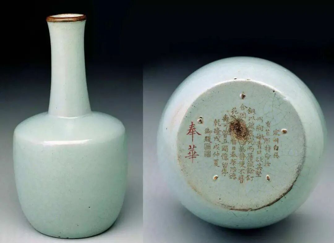 纸槌瓶是宋代十分流行的瓶类制式,它的形制很像造纸打浆时所用的槌,所以被称为纸槌瓶。有一种说法,说纸槌瓶是从波斯的料器传来,最早在宋代是用来装“花露水”,后来作为单纯的摆设,“烧香点茶,挂画插花”的花瓶。是一种深受宋代统治者青睐的器物之一。