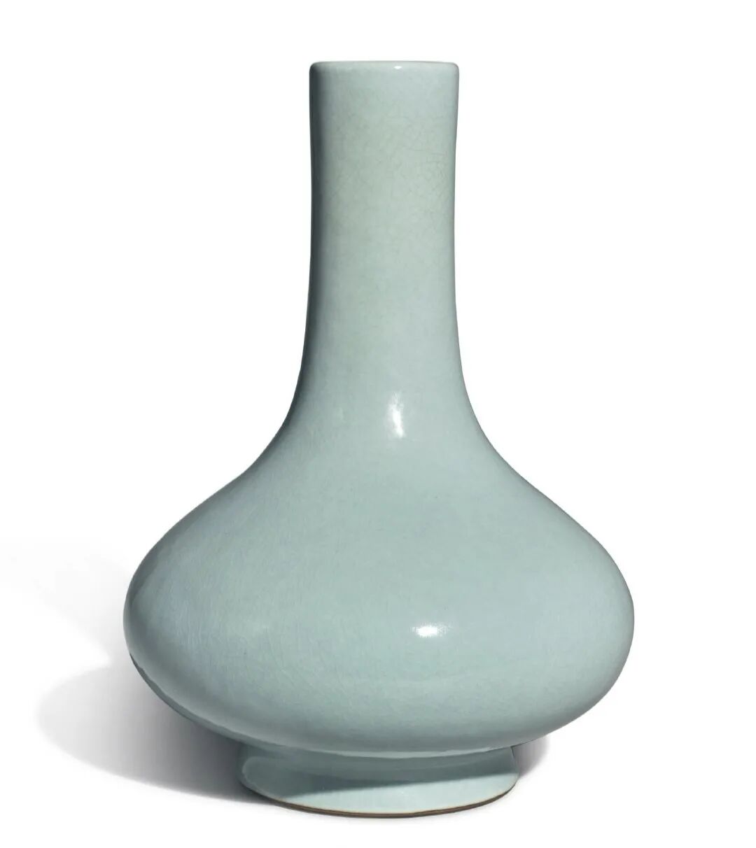 天球瓶是由胆瓶衍生的一种瓷器造型。始于明代永乐、宣德年间,因为下腹部形状像天球,所以叫天球瓶。