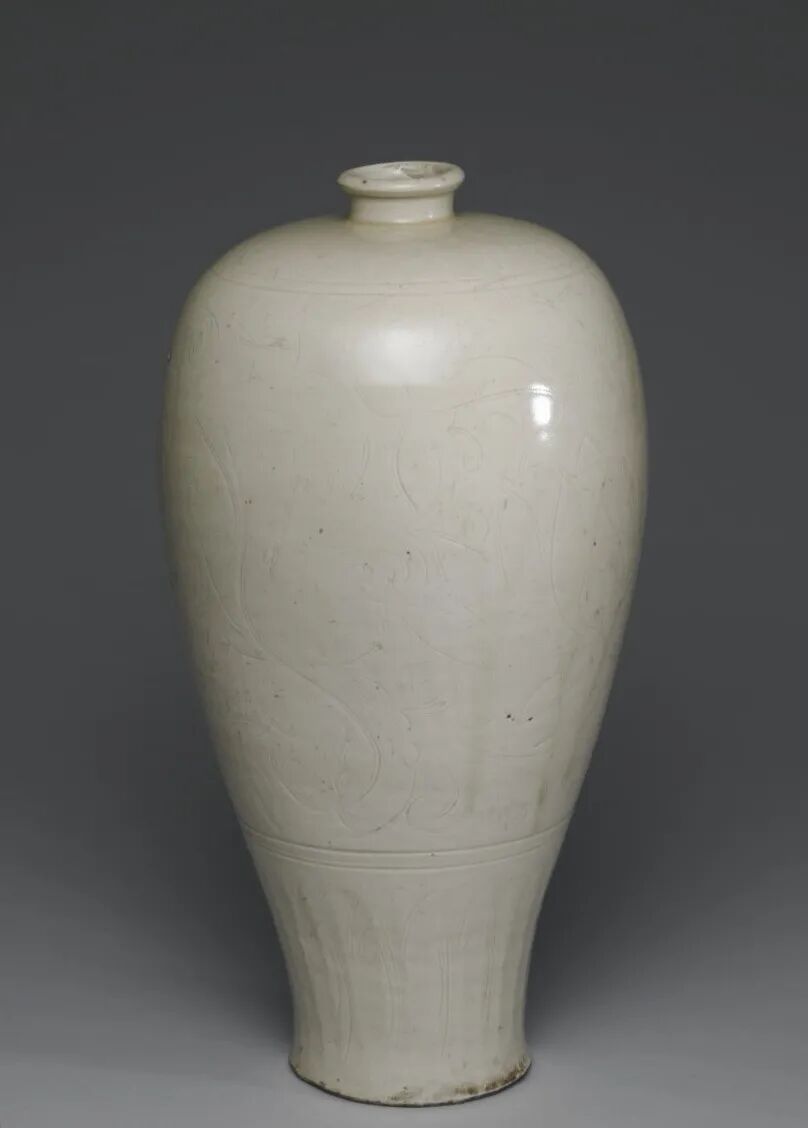 梅瓶也叫“经瓶”最早出现于唐代,是一种酒器,宋辽时期较为流行。因为口比较小,只能插梅枝,明朝以后被称为梅瓶。关于梅瓶的用途,磁州窑白地黑花梅瓶器腹有“清沽美酒”与“醉乡酒海”的诗句。梅瓶形制是小口、短颈、丰肩、瘦底、圈足。