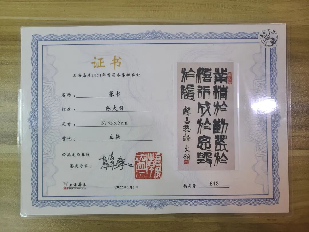 说明:此作经陈大羽外孙韩宁宁先生鉴定为真迹,并附专家鉴定证书。