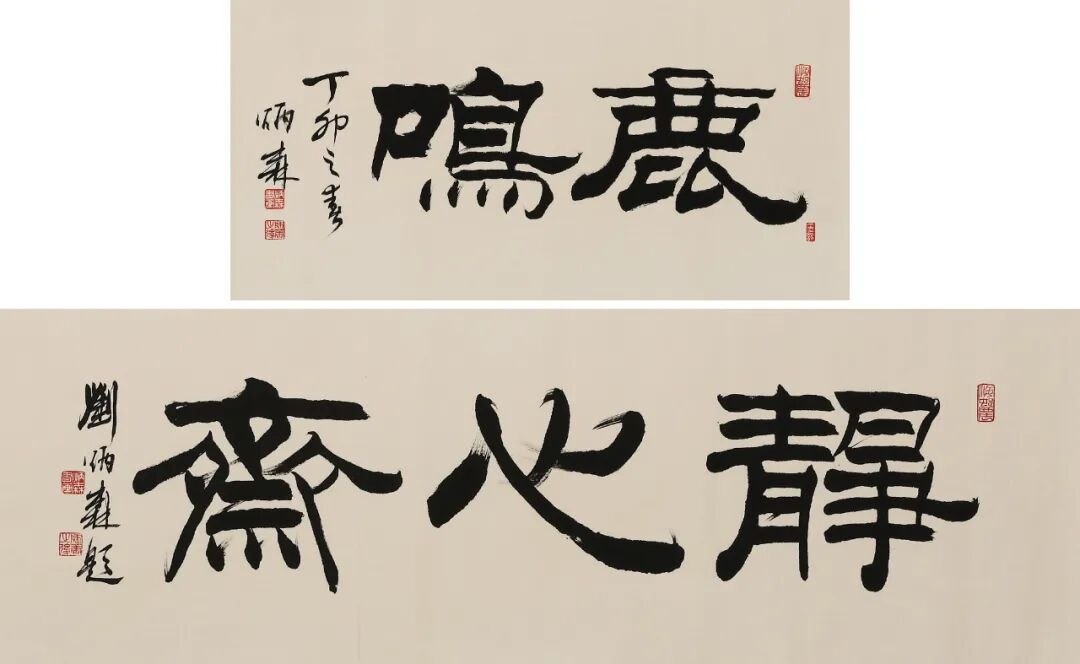 题识:1.鹿鸣。丁卯之春,炳森。2.静心斋,刘炳森题。