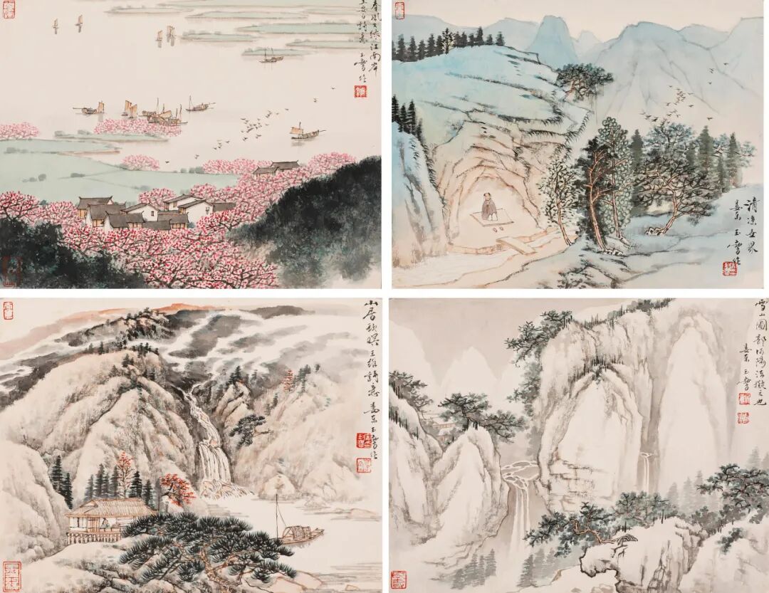1.玉麟作。2.紫金山天文台,娄东玉麟作。3.秋江,娄东玉麟作。4.清凉雪意,玉麟作。