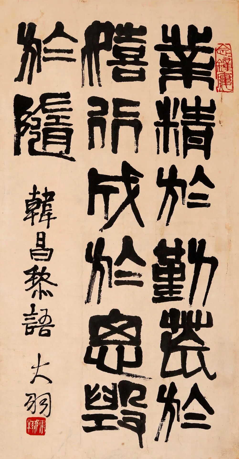 题识:业精于勤,荒于嬉;行成于思,毁于随。韩昌黎语,大羽。