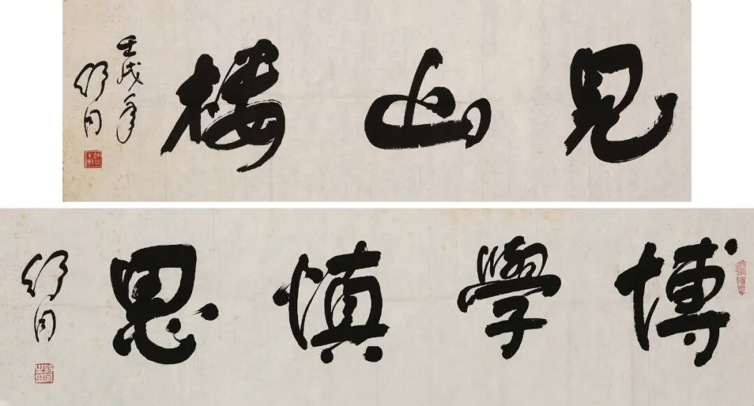 题识:1.见山楼。壬戌年舒同。2.博学慎思。舒同。