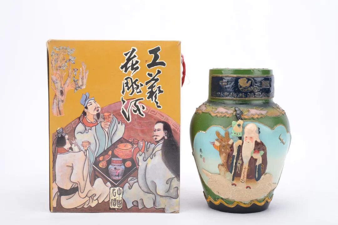 80-90年代产沈永和酒厂陈年花雕酒「聘珍楼定制」(寿比南山 梅妃持花)
