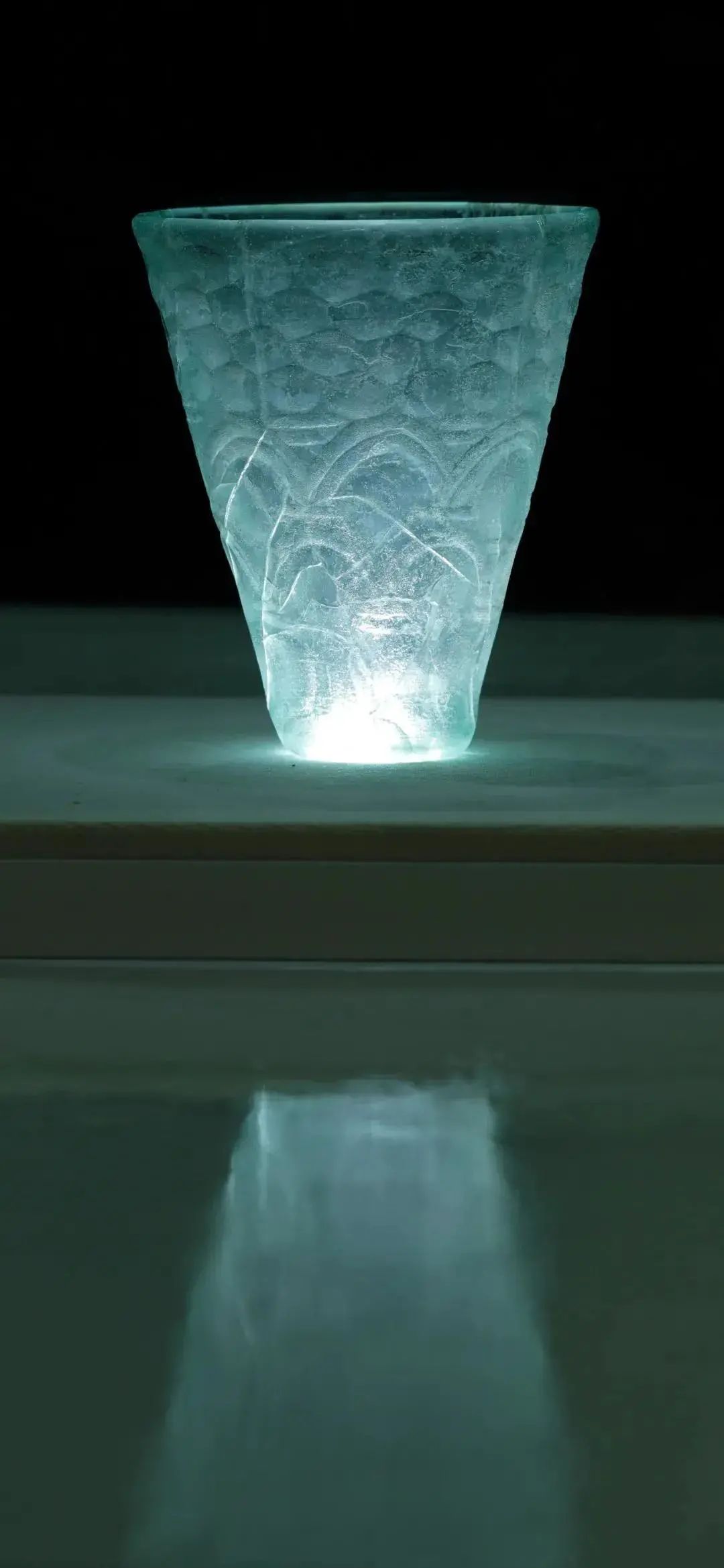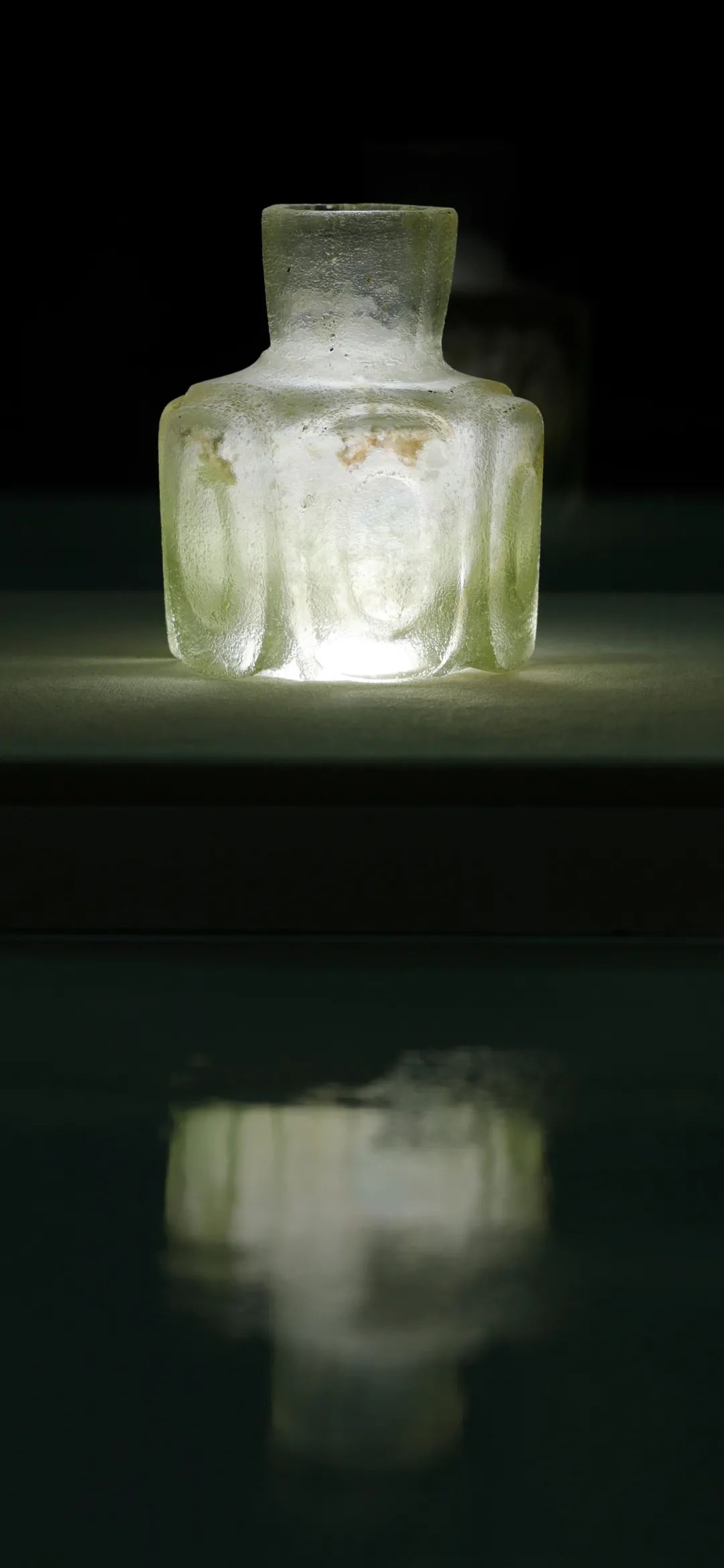 刻花玻璃长颈瓶,辽代,907-1125年,内蒙古通辽市奈曼旗陈国公主墓出土,内蒙古自治区文物考古研究院藏