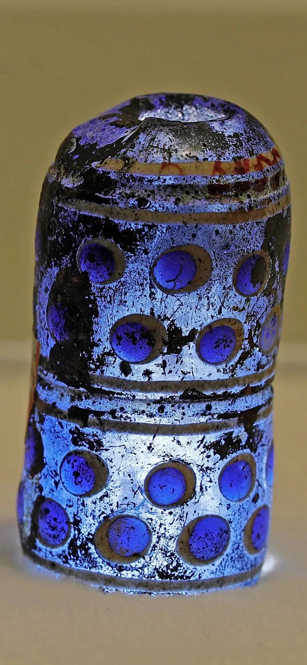 西汉蓝色弦纹玻璃杯 1991年贵港深钉岭(孔圣岭)12号墓出土