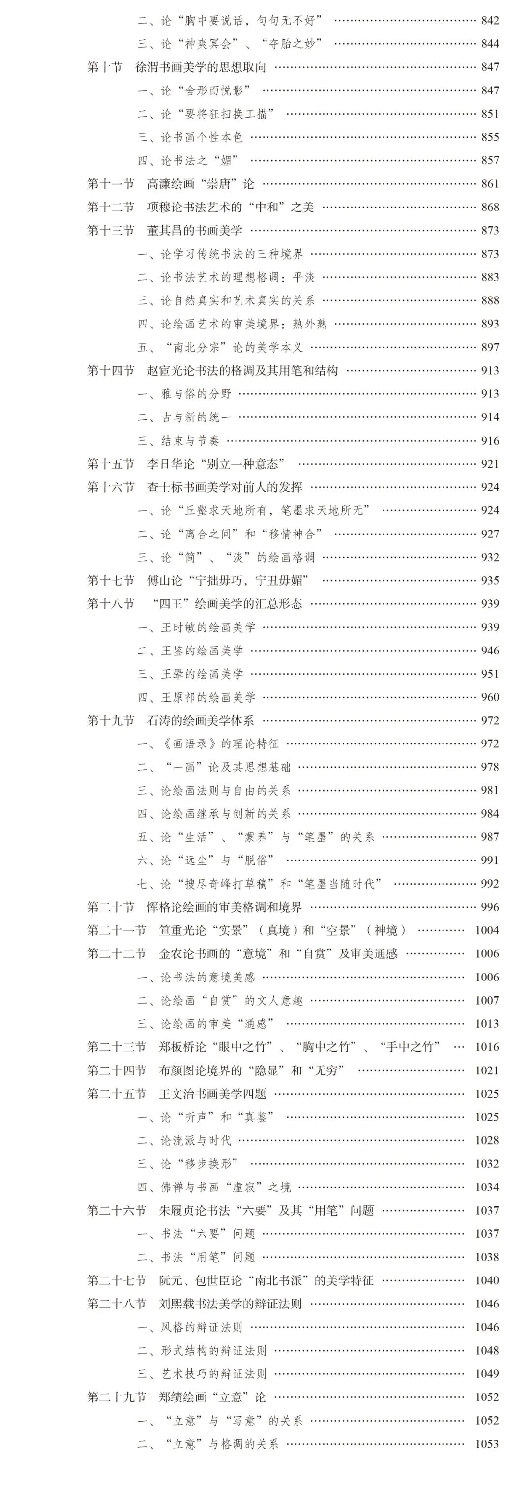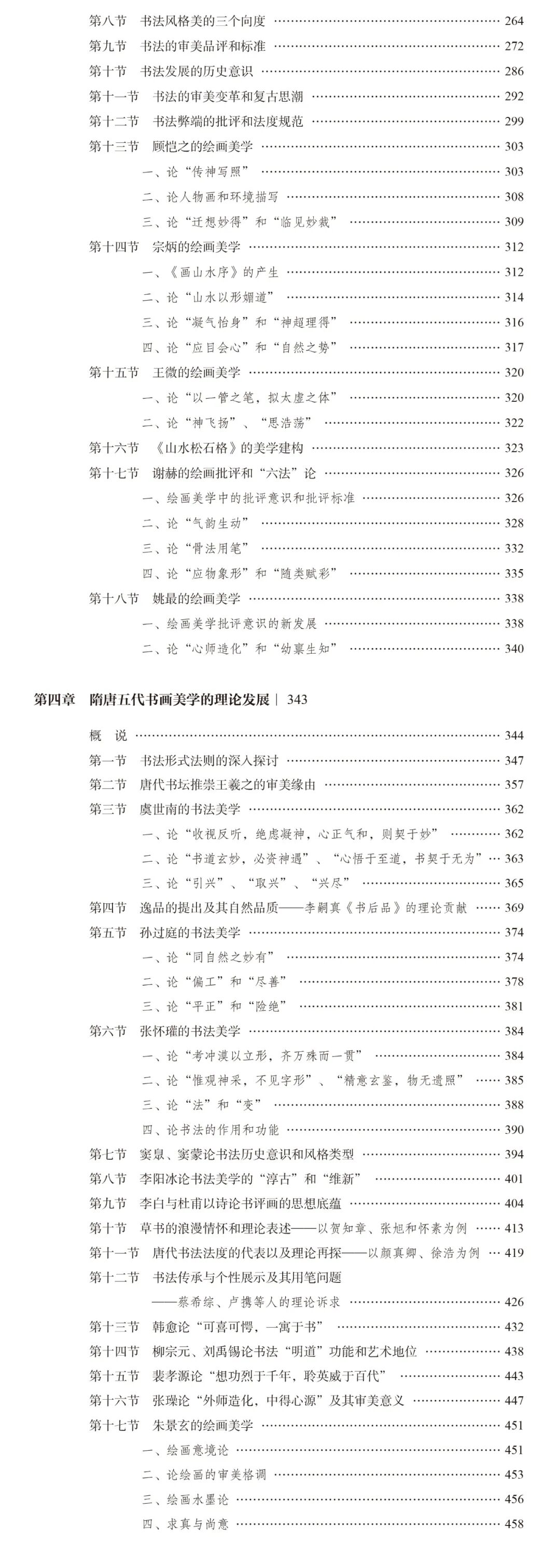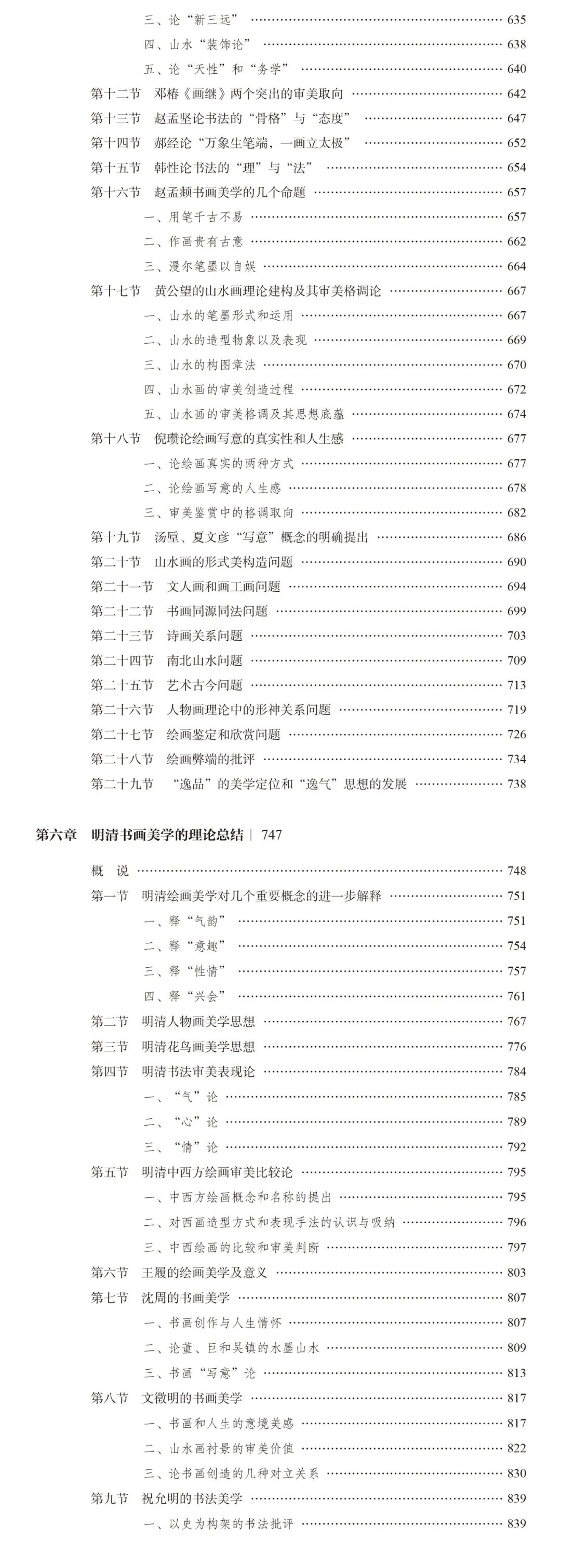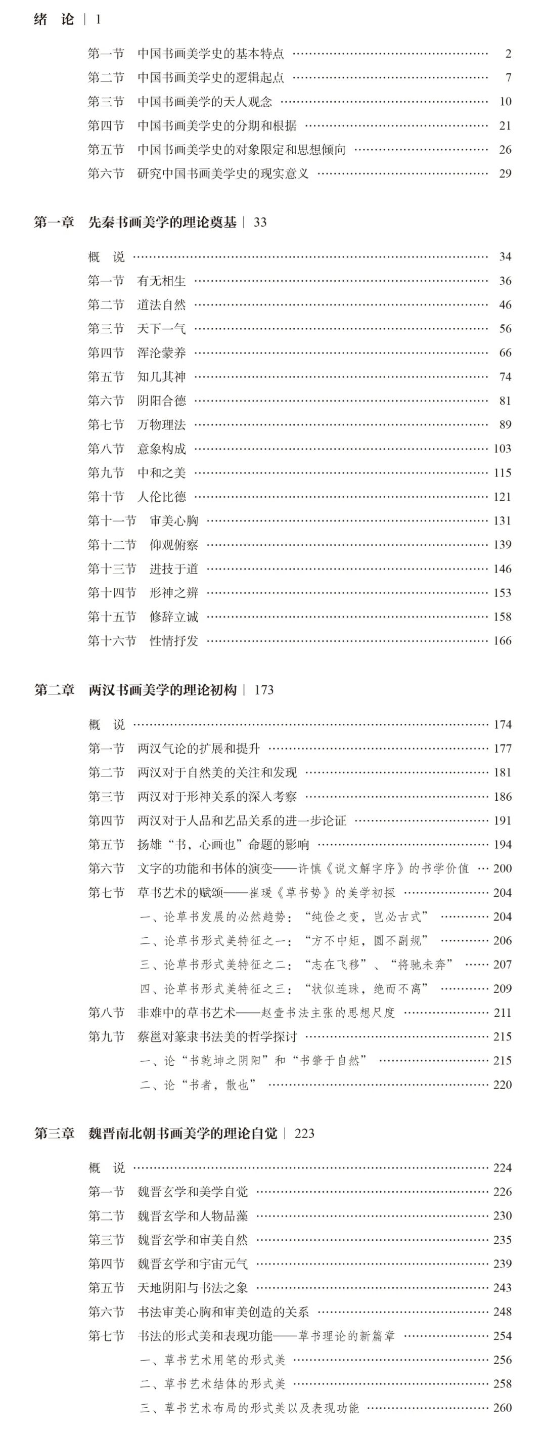 这六大阶段的史学分期实际体现着历史与逻辑相统一的原则。以朝代更迭为外在形态,审美逻辑则为内在骨骼,既能看到每一个朝代的政治、经济以及意识形态对书画美学的制约和影响,又能看出书画美学自身逻辑超越时代的独立性和连续性。可以看出,作者已从历代书画美学思想的发展中提取和营构出一个完整的理论体系。同时,该书的写作以“论”贯“史”,在客观叙述书画美学史的基础上,能对书画美学中的主要问题作出阐发,阐发中颇多独到、深刻的见解,为读者提供了新颖的认知角度。