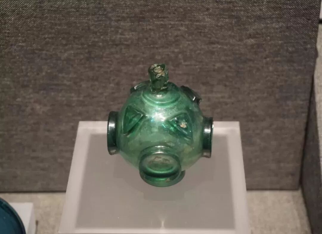 该琉璃瓶为球体,呈绿色且通体透明。此瓶造型颇为独特,独具匠心,十分罕见。![]()