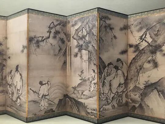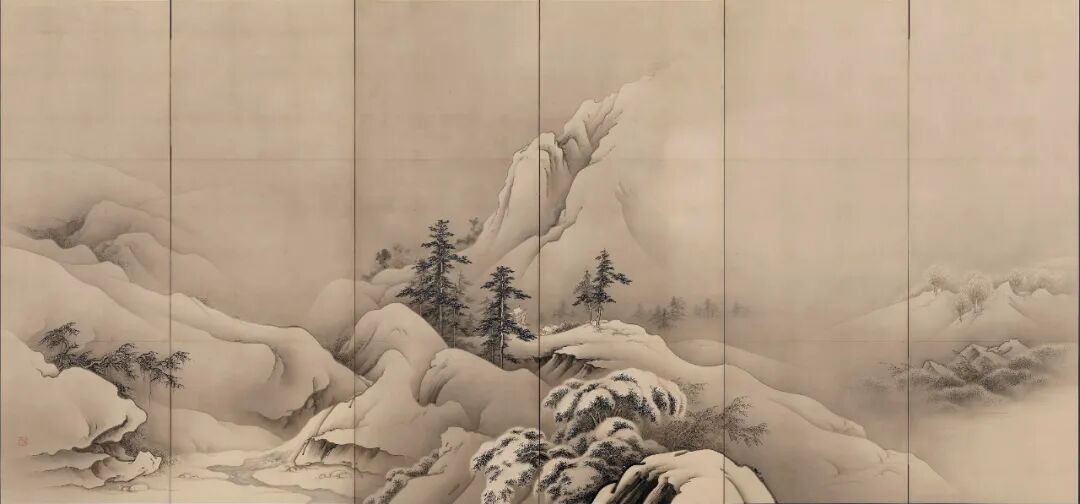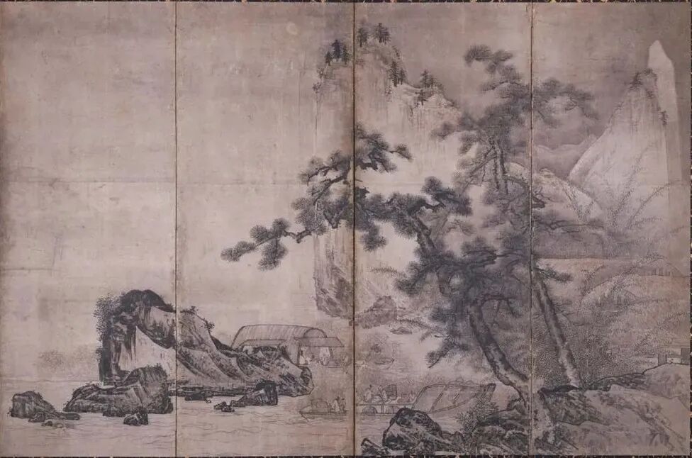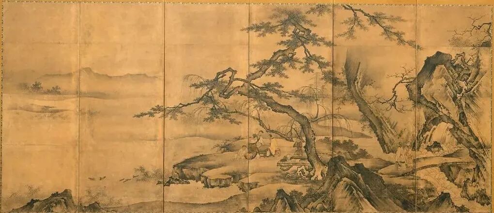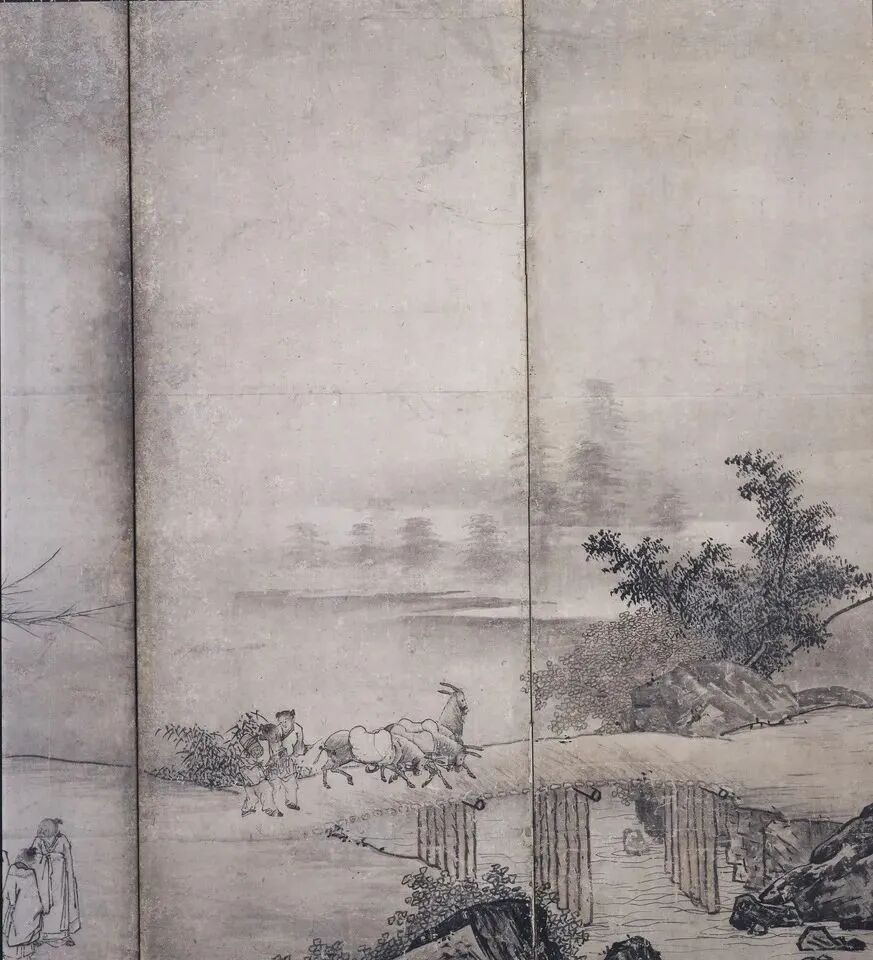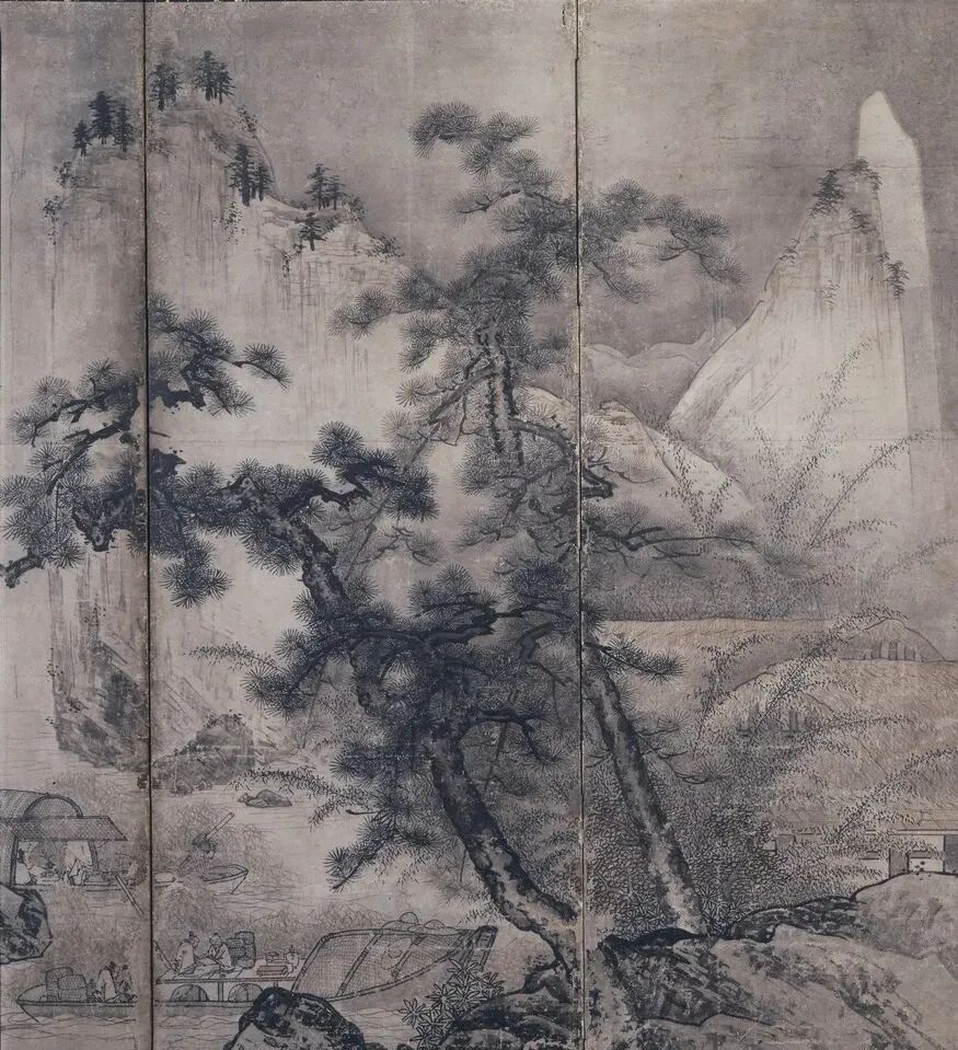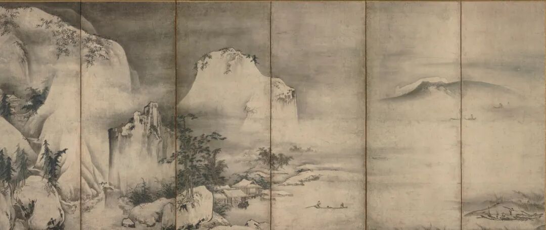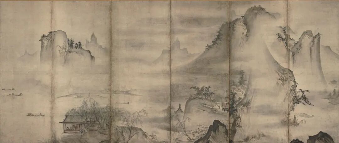 云谷等颜 山水图屏风 纸本墨画 153.5x342.8厘米 日本东京国立博物馆藏