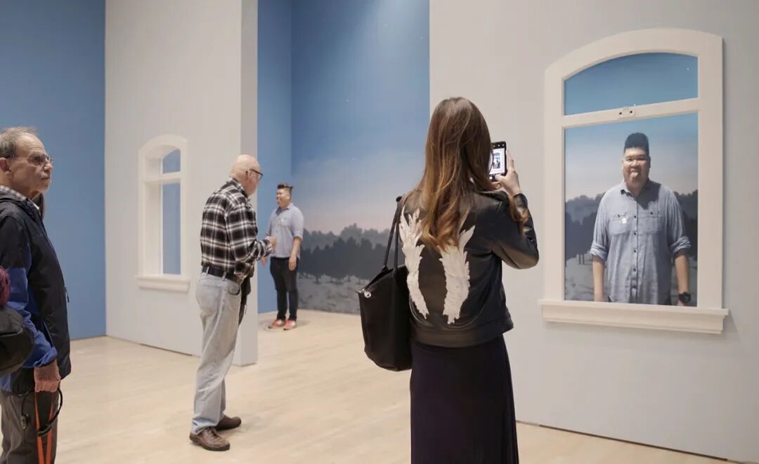 这次展览借用马格里特哲学的创作理念,搭载黑科技,让创造者可以使用这里的AR,即增强现实技术,去变换,创造他在现实中的形象。