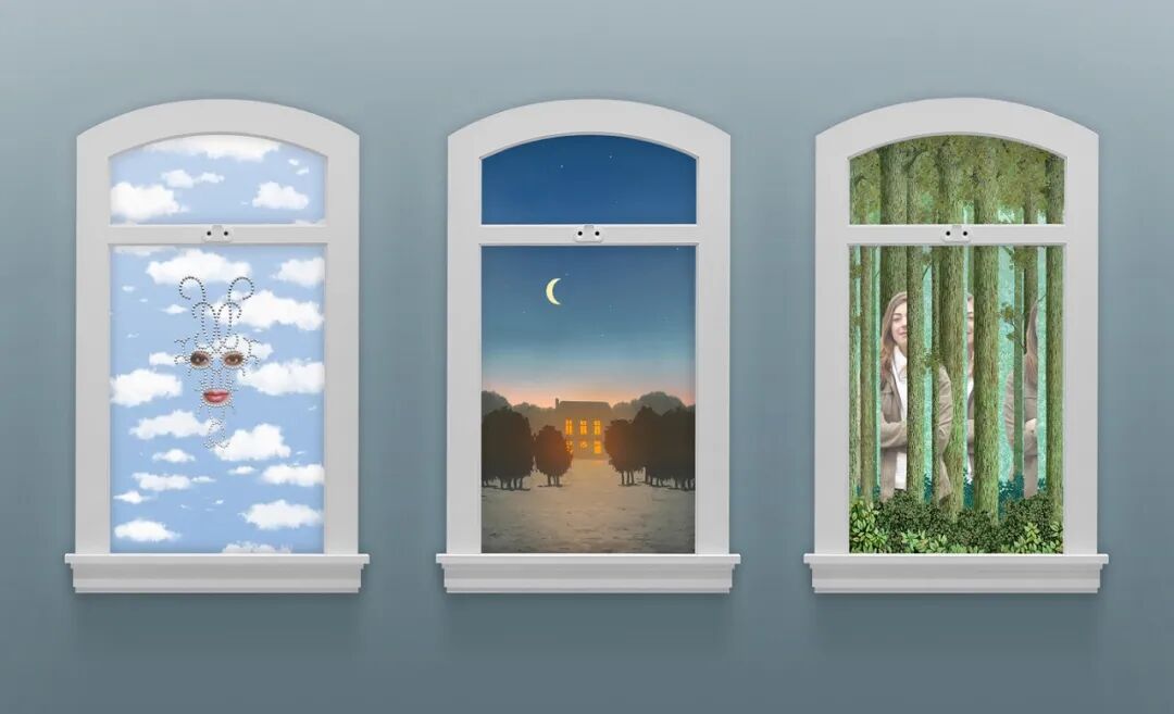 此次展览采用窗户样式,致敬了马格里特的一副画作《Where Euclid Walked》。