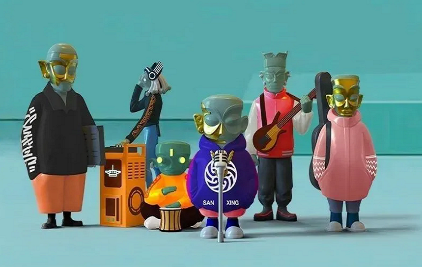 今年三星堆又借着盲盒出圈,推出首款青铜摇滚盲盒,以音乐出圈,组成一支摇滚男团,时尚感十足。