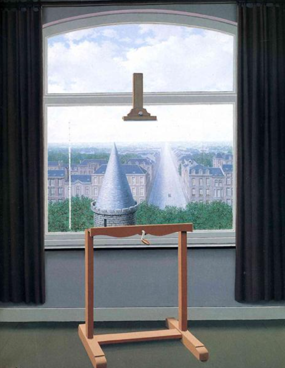 这也正切合了马格里特的艺术精神,即我们到底在看一幅画,还是就在画中。