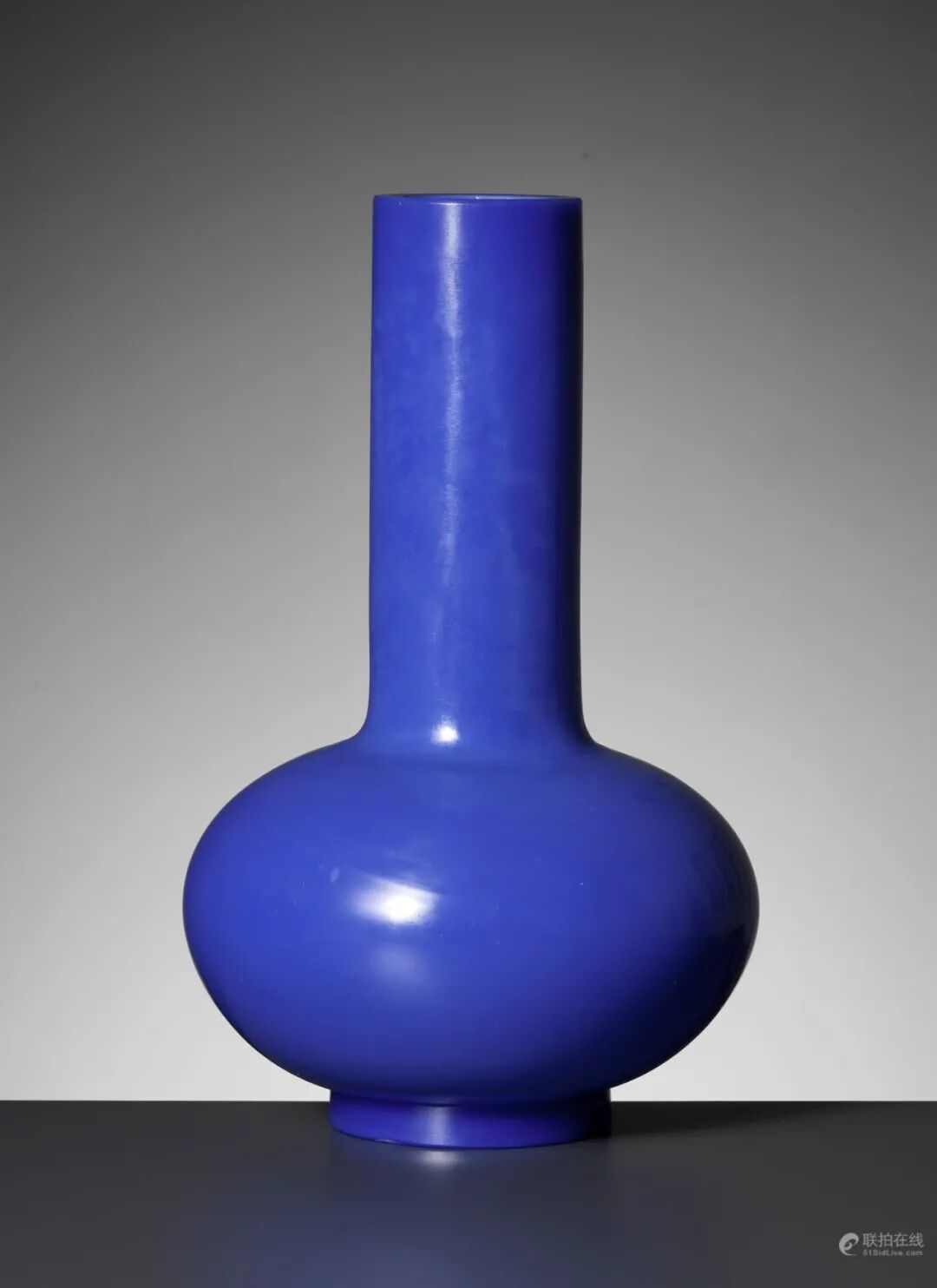 来源:Ann 及 Gordon Getty 收藏,编号 1994-182(根据底部标签)。伦敦 Spink and Son 艺廊,1994年。Plesch玻璃艺术品收藏,编号 Gu-30A,购于上述艺廊。纽约苏富比 Important Chinese Art 2018年3月21日 lot 662, 售价USD 16,250。美国伊利诺伊州一个研究机构收藏,购于苏富比。直口,长颈,鼓腹,造型秀巧,不透明的钴蓝色玻璃泛着浅色的漩涡纹理。Peter 与 Traudi Plesch 二人都是遭受纳粹迫害的难民。Peter Plesch 在遇到 Traudi 时已是一位资深收藏家。他的外叔祖弗里茨·冯·甘斯(Fritz von Gans)对 Peter 影响深远,并且将自己的文物收藏留给了柏林皇家普鲁士博物馆。然而,在以色列度蜜月时,Traudi 被中国古代琉璃的魅力所吸引,因此激发了一次新的收藏冒险之旅。他们购买藏品的一个标准就是:虽然喜好不同,但Peter与Traudi Plesch必须在藏品的购买选择上达成共识。因此,他们的藏品在四十年来被缓慢却明智地构建著,后来逐渐扩展到玉器和古代青铜器,这使得他们所拥有的藏品不仅优美珍贵,同时也颇具有学术意义。