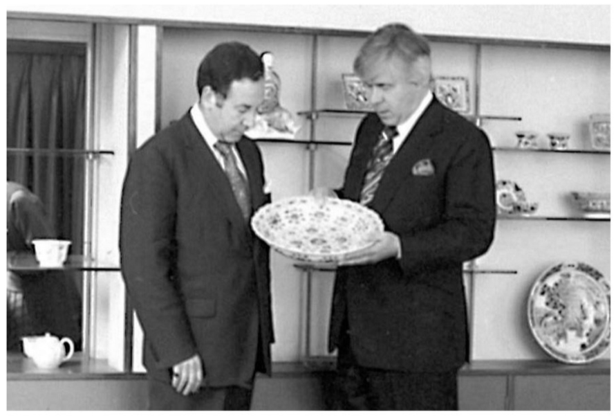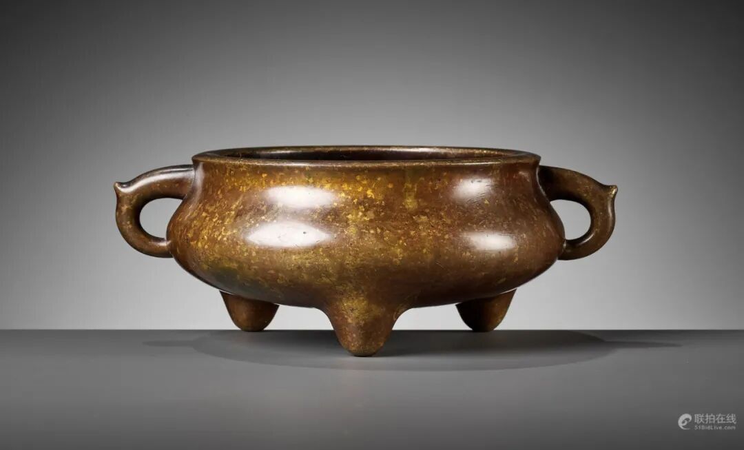 来源:加拿大蒙特利尔 Clyde Kwok 收藏;蒙特利尔 Karl Alexander Plath (1939-2020) ,购于上述收藏,保存在同一家族至今。平口,短颈,腹圆润,腹上饰板耳,底承三乳丁足。全器造型规整,铜质精纯,通体以洒金为饰,疏密分布,错落有致,尽显内敛沉静之韵。另一件“珍舍永宝“款洒金炉,见伦敦苏富比2021年11月3日 lot 165。Karl Alexander Plath (左图)出生于德国,21 岁时移居加拿大,并在此建立了两家生产电信和飞机发动机零件的公司。1964年,Plath 与 Concordia 大学的 Clyde Kwok 教授(右图)成为朋友。2005 年,Plath 收购了 Clyde Kwok 的中国青铜器收藏。根据 Plath 家族的说法,此件拍品此前来自于一个旧上海家族的收藏。