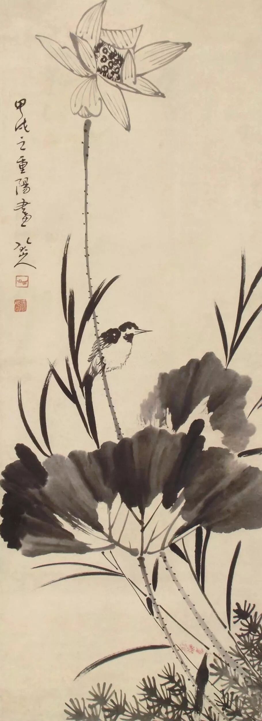 荷花小鸟