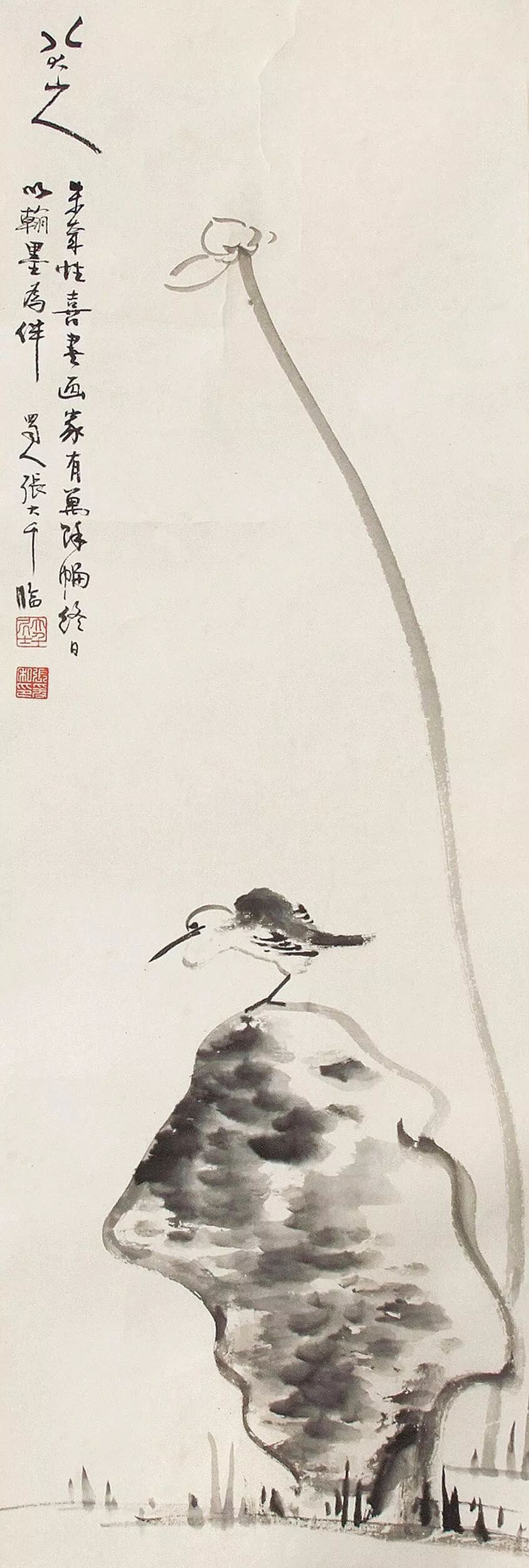 张大千仿八大鸟石